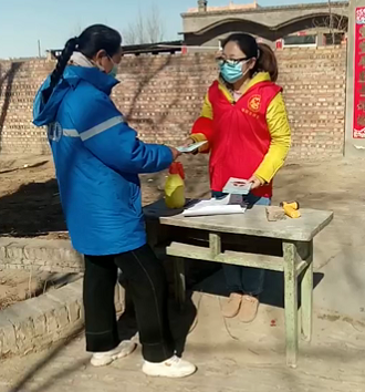 图3:为进村人员发放疫情宣传手册