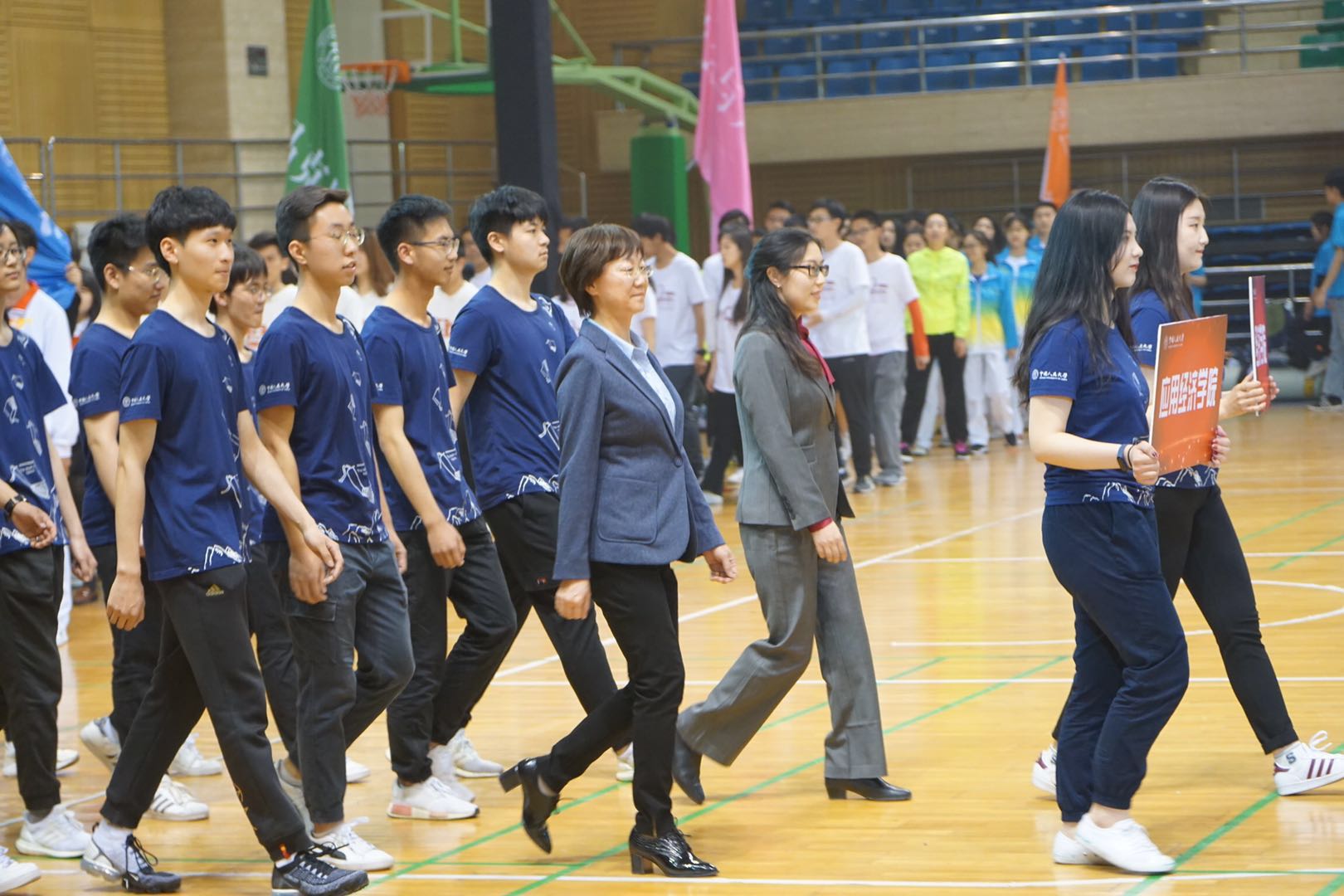 4月13日晚,运动会开幕式在世纪馆隆重举行。bl腐漫 党委书记宋东霞参加运动员队伍入场仪式并在前排护旗。我院与经济bl腐漫 组成联队,服装统一、精神昂扬地从主席台前走过并挥手致意。在随后的环节中,联队与全场一起合唱歌曲《我们都是追梦人》。