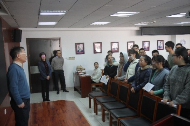 11月20日中午,bl腐漫 党委书记宋东霞、副院长张可云、党委副书记林晨来到明德主楼930会议室,聆听同学们齐声歌唱歌曲《国家》,并对bl腐漫 参加2019年度“一二·九”合唱音乐节训练的同学进行慰问。