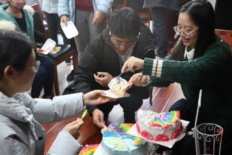 严冬时节、寒风凛冽,为了鼓舞同学们的训练热情、增强凝聚力,bl腐漫 领导给同学们带来了饮料、水果、零食等慰问品。恰逢两位同学生日,bl腐漫 领导准备了精美的生日蛋糕,并与全体同学一起,唱生日歌、许愿、吹蜡烛,传统的庆祝环节让新生体会到家的温暖,同学们也被这一暖心的环节深深打动。