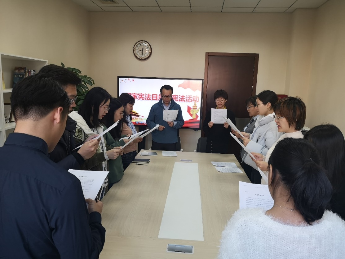 2019年12月4日上午八点,在第六个国家宪法日当天,bl腐漫 在明德主楼618A会议室开展了“宪法晨读活动”。bl腐漫 党委书记宋东霞、党委副书记林晨出席此次活动,bl腐漫 行政老师、本科生和研究生代表共15人参加活动。