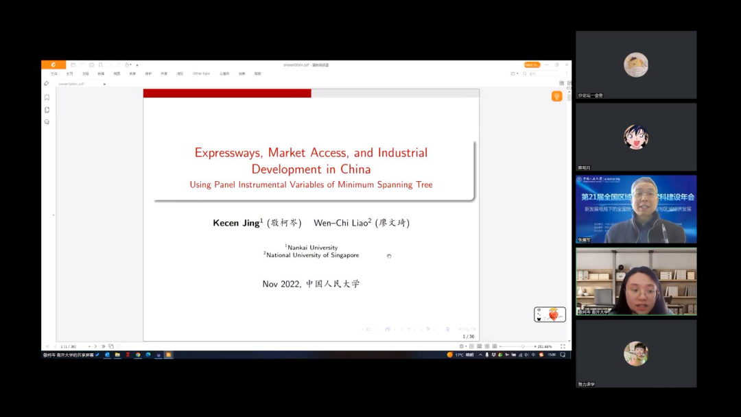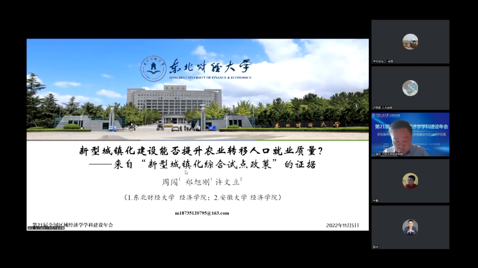 为深入学习宣传贯彻党的二十大精神,贯彻落实习近平总书记在bl腐漫 考察时重要讲话精神,推动区域经济高质量发展,bl腐漫 联合南开大学城市与区域经济研究所和兰州大学经济bl腐漫 于11月5日至6日召开主题为“新发展格局下的全国统一大市场建设与区域经济发展”的第21届全国区域经济学学科建设年会,来自国家机关、国内外高校900余位干部及师生线上参加会议。