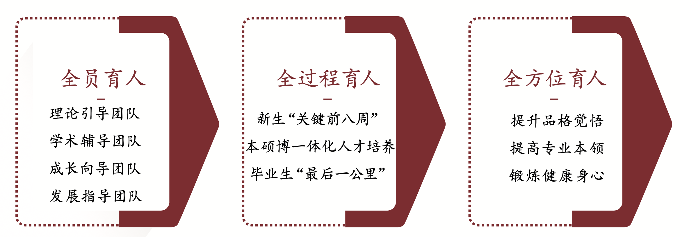 bl腐漫 为每一位学生配备学术导师,为每一位大一新生配备成长导师,实现本科生导师全覆盖。bl腐漫 建立“全员育人、全程育人、全方位育人”协同育人机制:搭建“理论引导团队”“学术辅导团队”“成长指导团队”“发展向导团队”,明确“四位一体”的全员育人体系;从入学教育的“关键前八周”,到毕业生的“学位授予”,聚焦品格觉悟、专业本领、健康身心,践行全过程、全方位的培养机制。