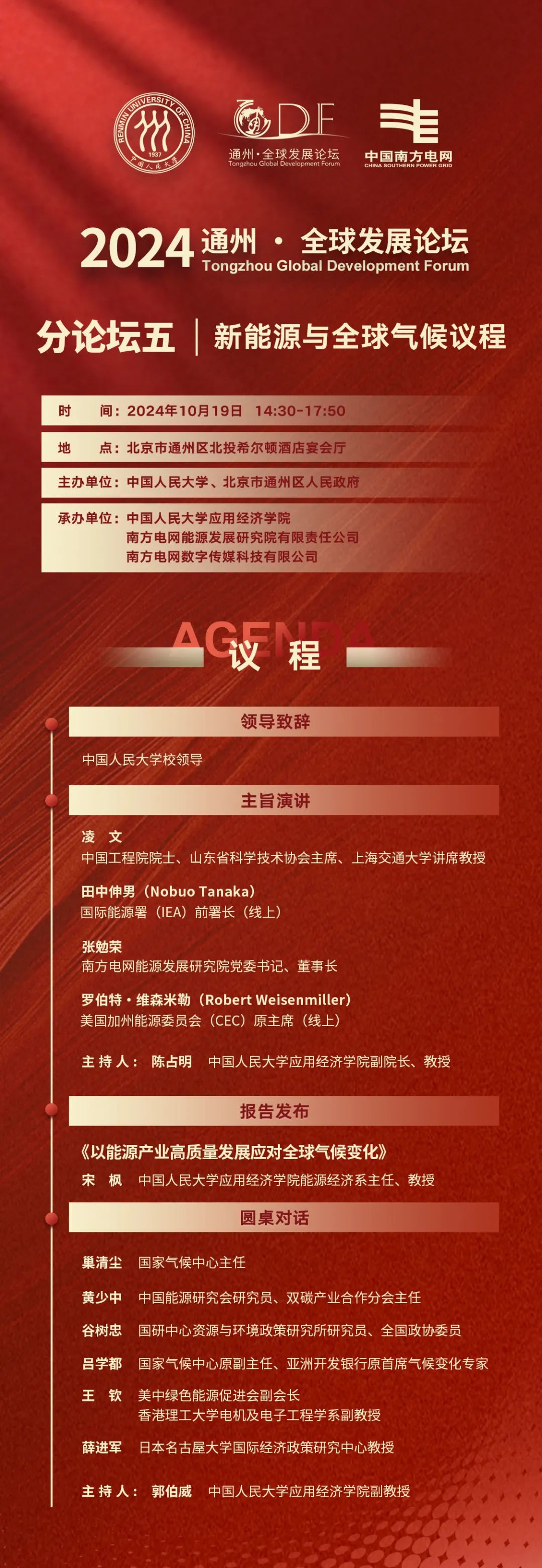 会议邀请丨通州·全球发展论坛(2024)分论坛五:新能源与全球气候议程