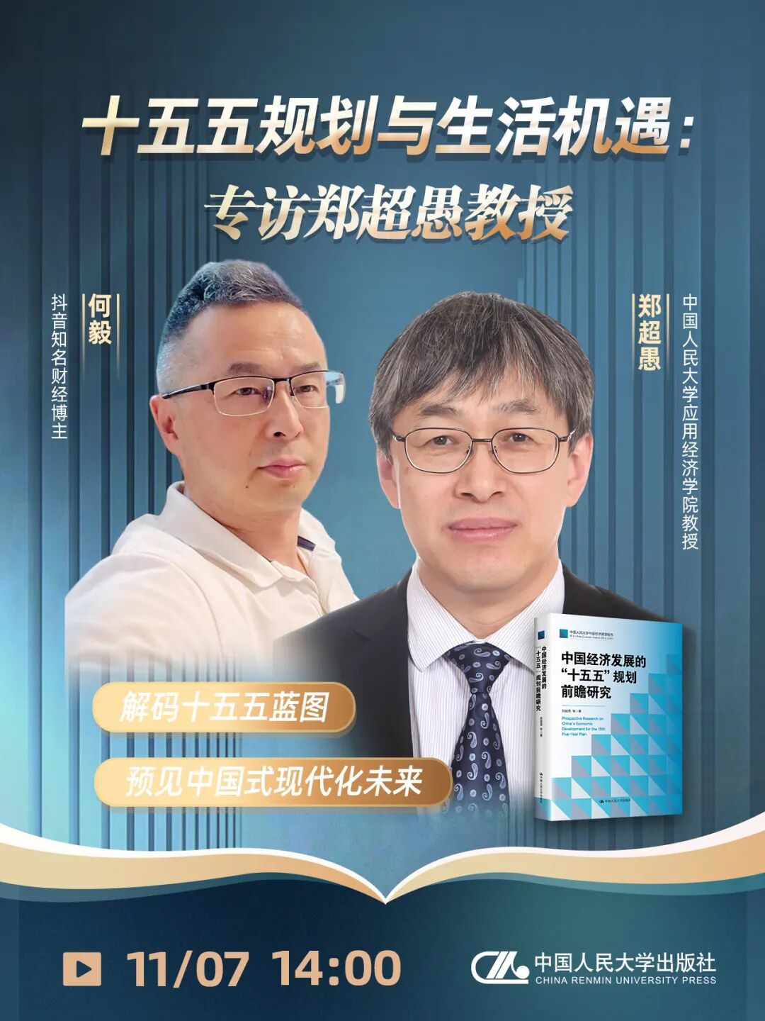 学术公告 当前位置: bl腐漫 - 学术公告 - 讲座 专访郑超愚教授:解码“十五五”蓝图、预见中国式现代化未来——即将直播,欢迎观看! 发文时间: 2025-11-07 阅读次数: 欢迎您扫码观看直播! 直播时间 11月7日(星期五)14:00 来源:bl腐漫 出版社 设计 责编:马文林 审核:陈佳莹 宋枫