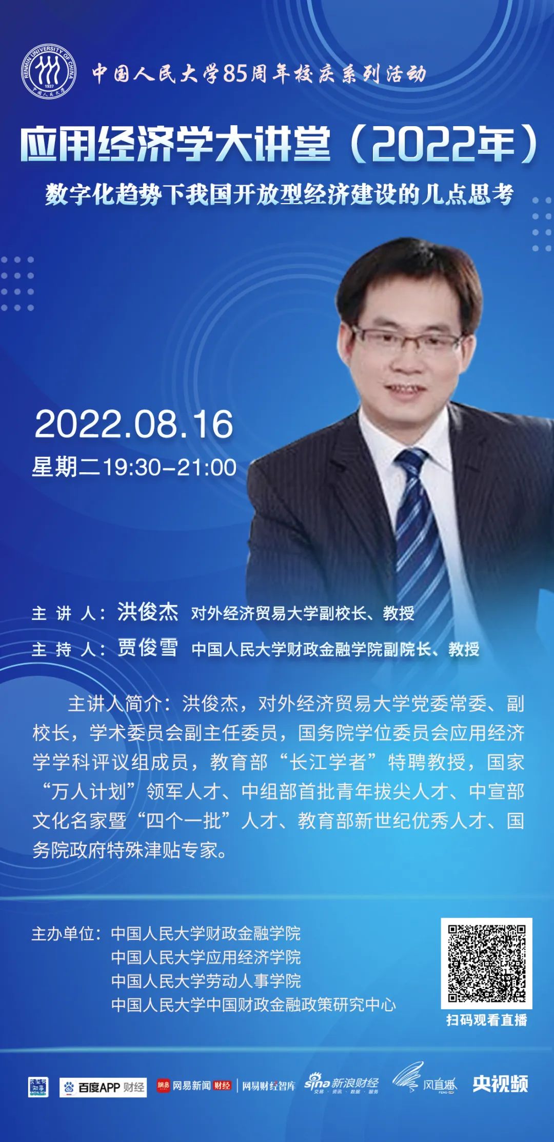 应用经济学大讲堂(2022年) | 洪俊杰:数字化趋势下我国开放型经济建设的几点思考