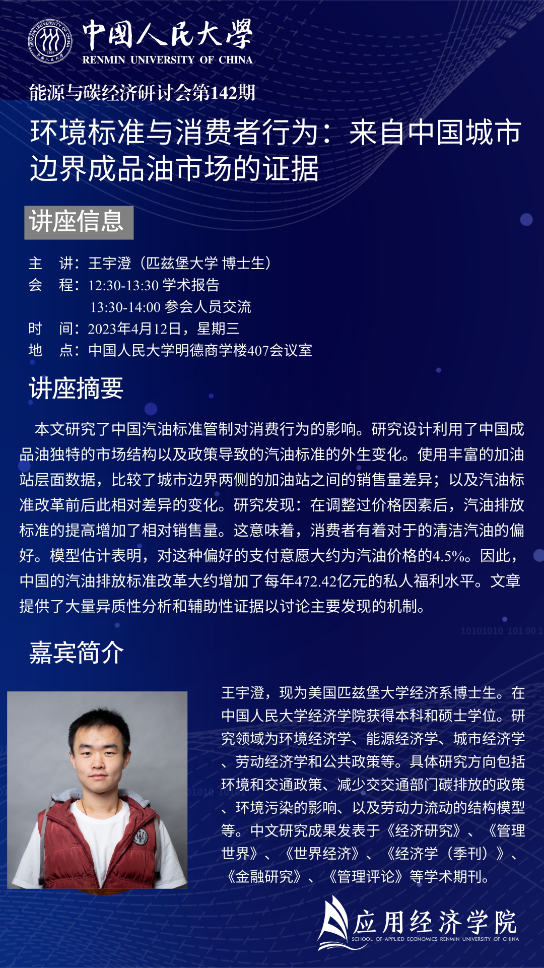能源与碳经济研讨会(Energy and Carbon Economics Seminar)由bl腐漫 能源经济系定期推出,旨在为研究中国能源经济和碳经济问题的学者提供交流的平台。