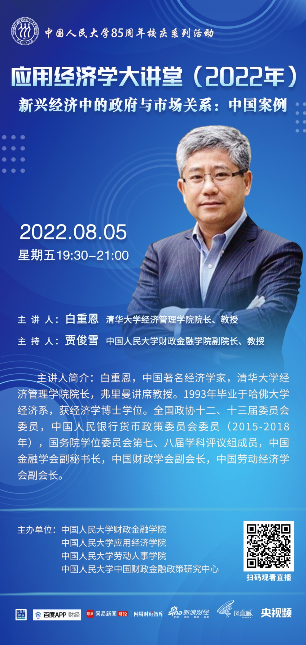 应用经济学大讲堂(2022年)| 白重恩:新兴经济中的政府与市场关系——中国案例