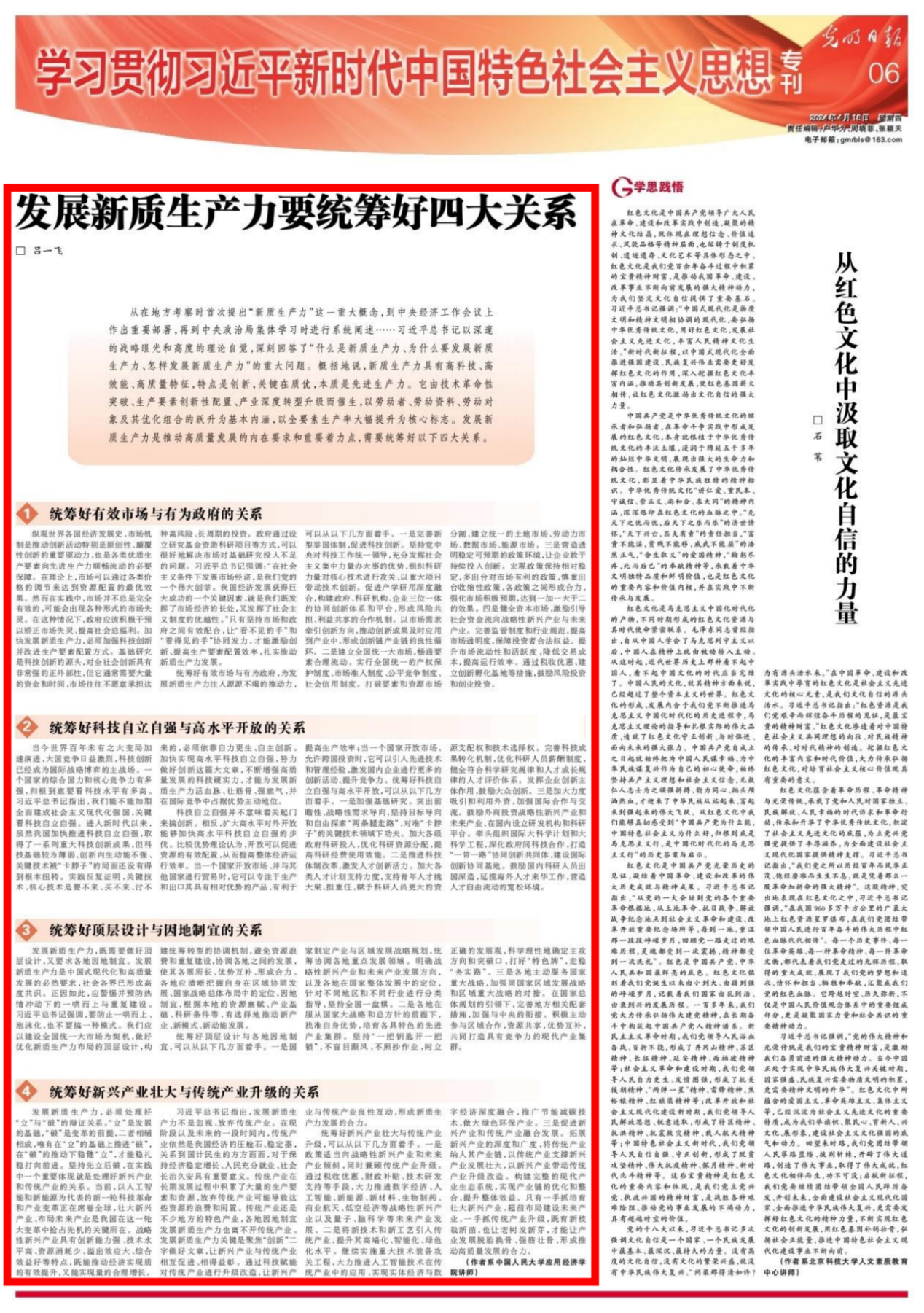 发展新质生产力,必须处理好“立”与“破”的辩证关系。“立”是发展的基础,“破”是变革的前提,二者相辅相成,唯有在“立”的基础上推进“破”,在“破”的推动下稳健“立”,才能稳扎稳打向前进。坚持先立后破,在实践中一个重要体现就是处理好新兴产业和传统产业的关系。当前,以人工智能和新能源为代表的新一轮科技革命和产业变革正在席卷全球,壮大新兴产业、布局未来产业是我国在这一轮大变革中抢占先机的关键所在。战略性新兴产业具有创新能力强、技术水平高、资源消耗少、溢出效应大、综合效益好等特点,既能推动经济实现质的有效提升,又能实现量的合理增长。