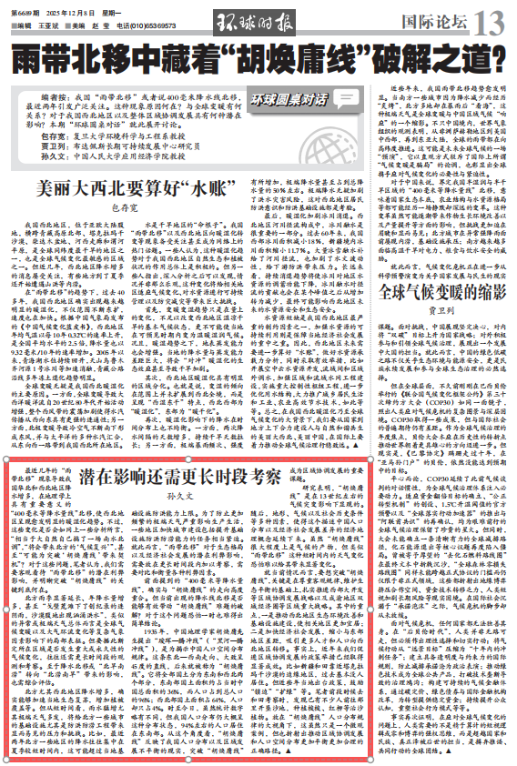 编者按:我国“雨带北移”或者说400毫米降水线北移,最近两年引发广泛关注。这种现象原因何在?与全球变暖有何关系?对于我国西北地区以及整体区域协调发展具有何种潜在影响?本期“环球圆桌对话”就此展开讨论。