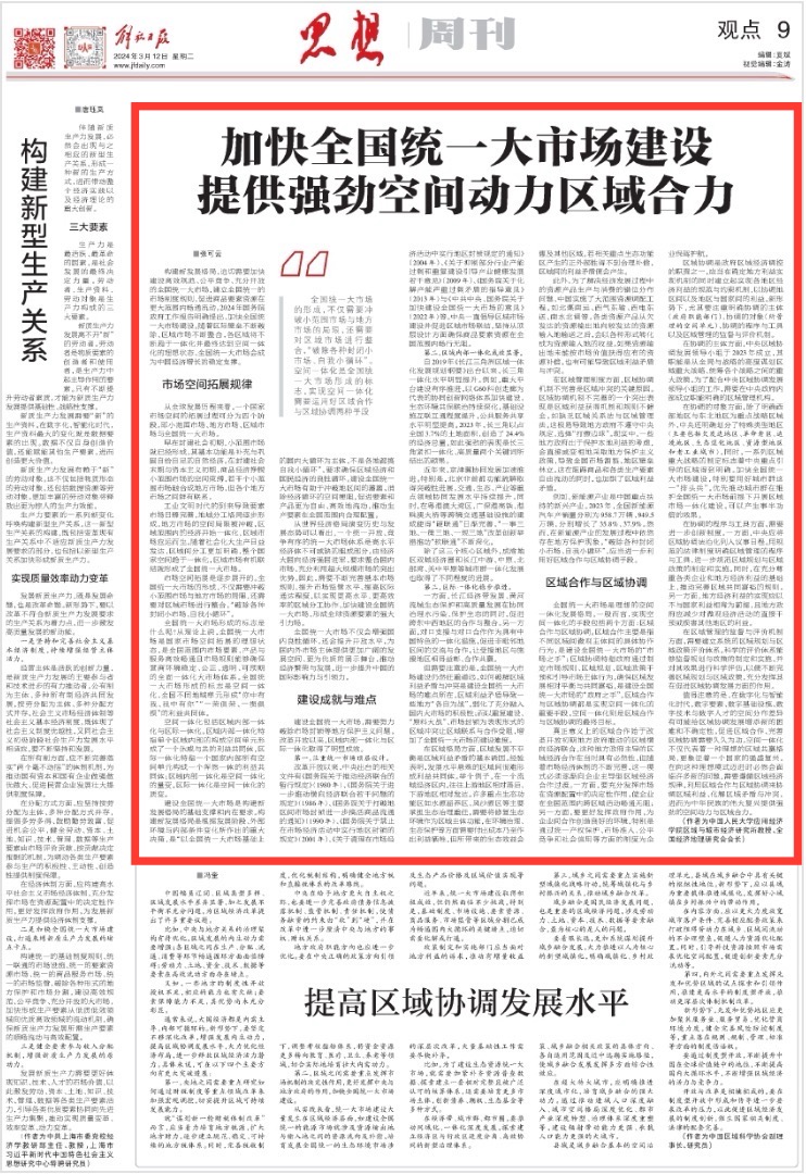 建设全国统一大市场,需要努力破除市场封锁等地方保护主义问题。改革开放以来,区域内部一体化与区际一体化取得了明显成效。