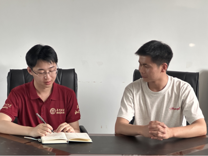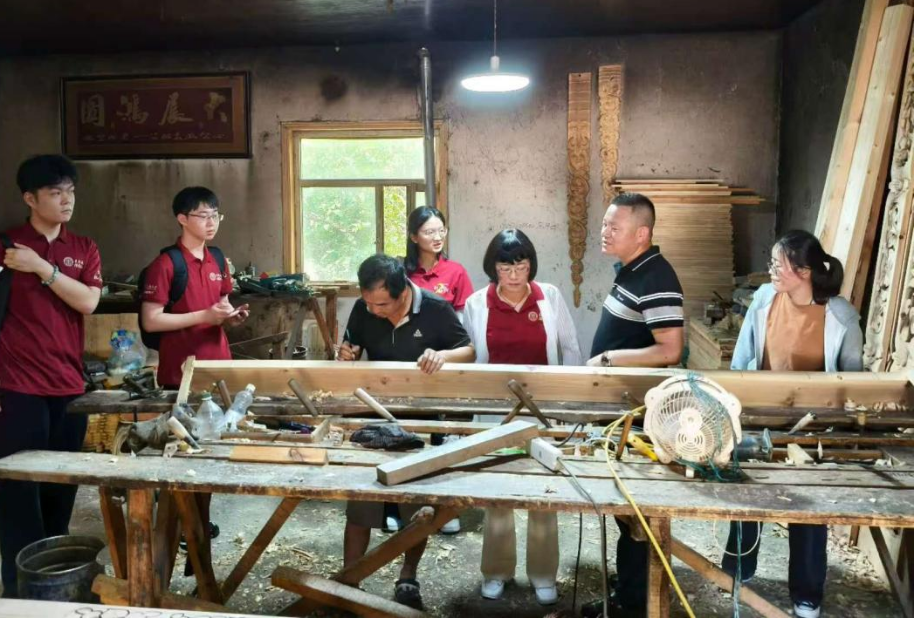 ▲知行践行队在街子镇托龙都村集体经济木材加工厂调研