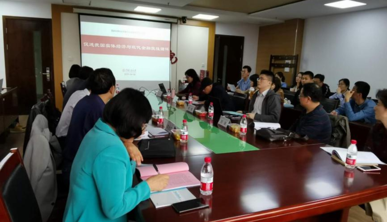 2019年4月24日下午14:30,我院主办的“我国实体经济与现代金融循环的困惑与破解”学术研讨会在明德主楼734会议室举行。本次会议由我院副院长黄隽教授主持,国民经济管理系主任方芳教授做主题报告。国家融资担保基金有限责任公司向世文总经理、民生银行供应链金融事业部汪晓帆副总经理、我校财政金融bl腐漫 戴稳胜教授、中国社会科bl腐漫 大学经济bl腐漫 李永森教授、对外经贸大学金融bl腐漫 丁建臣教授以及校内外多位专家学者与我院学生三十余人参加了此次研讨会。