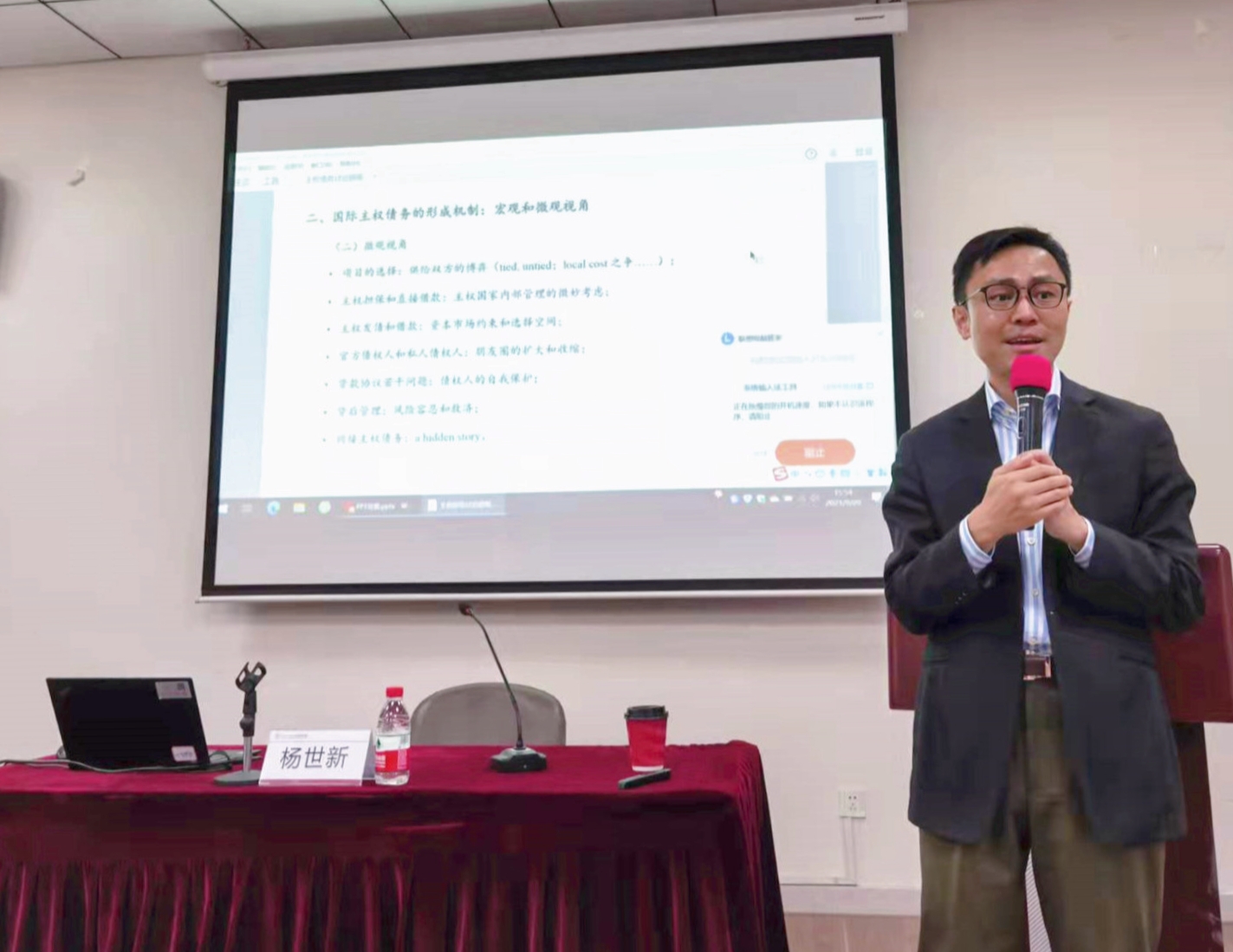 9月29日,bl腐漫 “和平与发展经济学研究所系列讲座”第一讲在明德主楼419举办。中国银行公司金融部主管杨世新作题为《国际主权债务的周期、形成机制和改革思路》的主题报告。会议由bl腐漫 和平与发展经济学研究所所长谢伦裕主持。