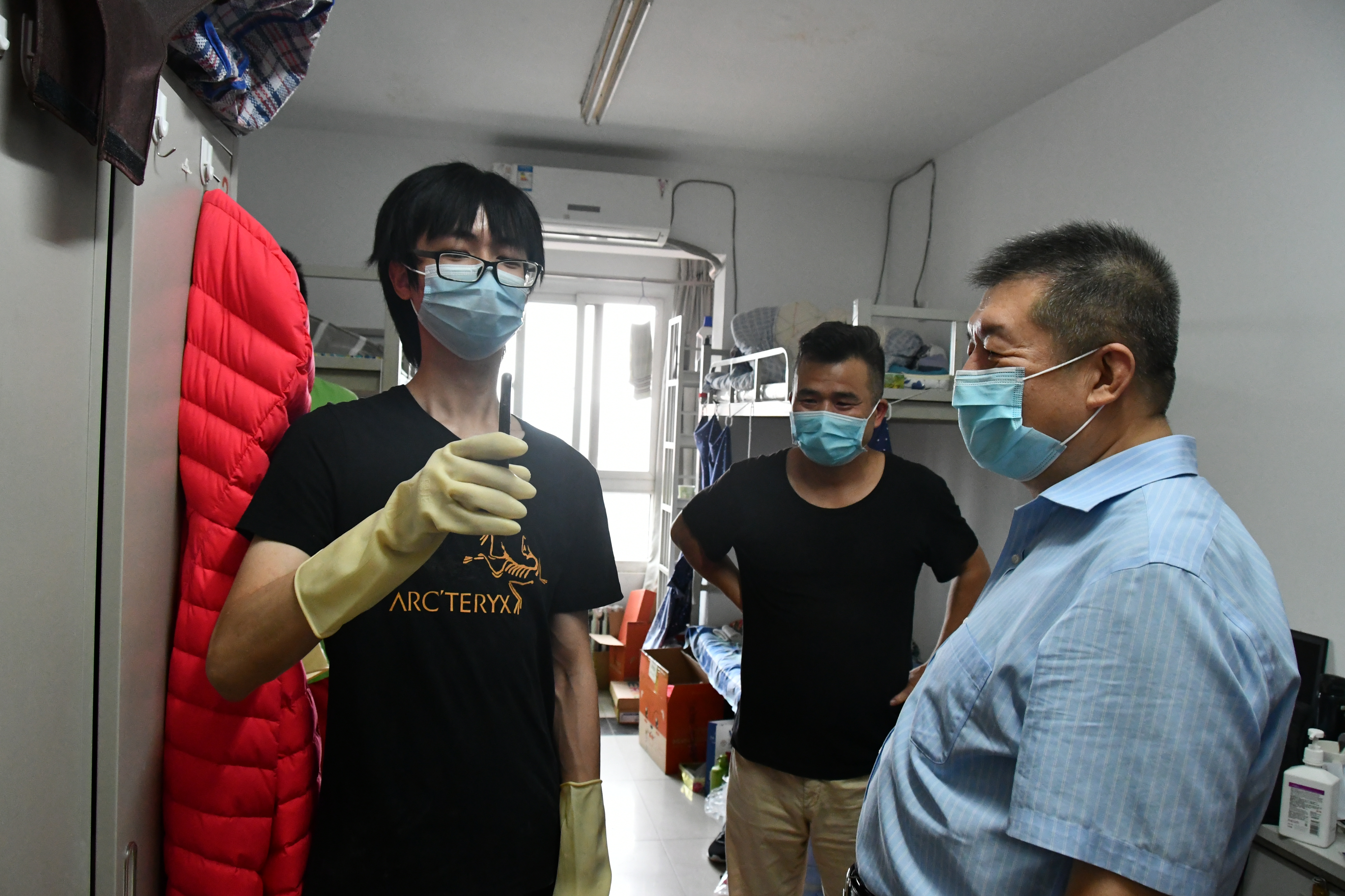 bl腐漫 副校长贺耀敏2日上午前往知行二楼看望师生志愿小队,详细查看了行李收整打包情况,并与毕业生同学进行了现场连线。贺耀敏首先关心慰问了在屏幕那头的毕业生,他表示虽然因为疫情的复发,大家毕业之后的工作生活安排会受到影响,但是一定要抱有信心,努力适应新环境与新变化。同时也欢迎毕业生在疫情结束后,常回学校来看看。学校和bl腐漫 一定会周到细致地为每一位委托打包行李的毕业生们提供服务。