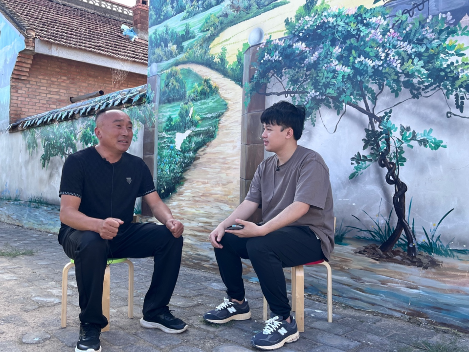 ▲于东立同学访谈黄家寨子村党委书记柳志红