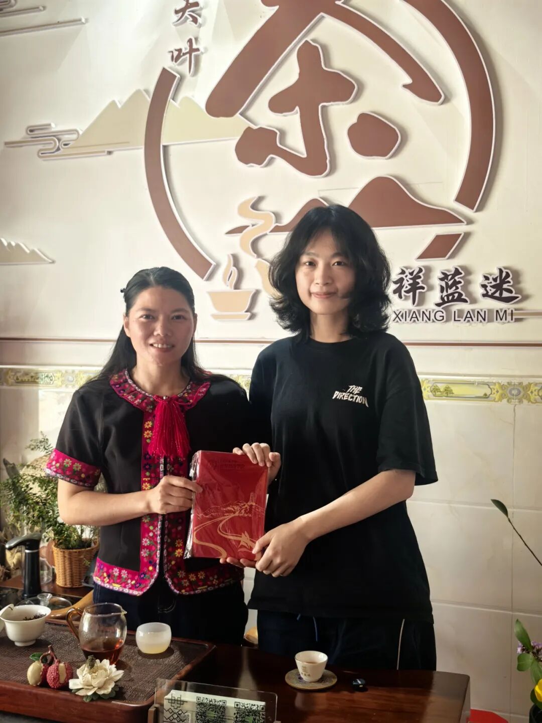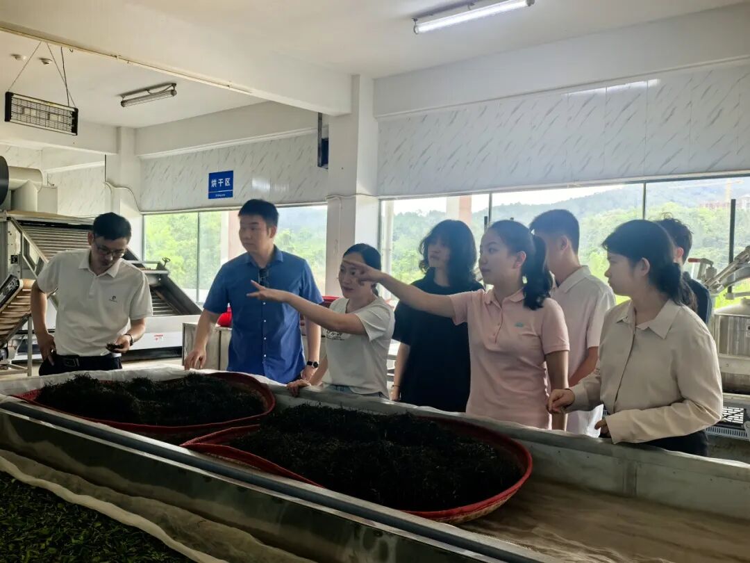 苗家四妹向调研团介绍苗绿香茶业的发展历程。五指山水满乡新村是五指山大叶红茶的主要产地之一,也是苗族同胞的家园。这里依山傍水,云雾缥缈,每家每户都种植着茶树,有着深厚的茶文化底蕴。在2015年,三姐成立五指山苗绿香茶业专业合作社,一心投身于当地茶产业的发展。规模小,她们就承租村里的茶园,收购农户的茶青,缺经验,她们就去云南、福建茶厂学习,了解整个产业的工艺技术和管理方法。经过她们的不懈努力,合作社的规模越做越大,最终成立的自己的品牌“苗绿香”。如今,苗绿香茶业专业合作社已经成为一家集种植、加工、销售、培训为一体的茶企业,逐步走向规模化和品牌化发展。