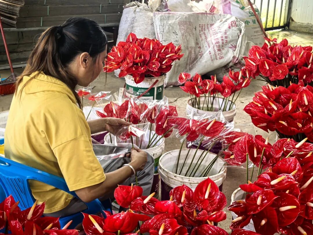 基地采用合作社+企业+农户的模式运营,为周边村民提供了20多个就业岗位。并且出于助农情怀,基地负责人甚至自设目标,基地年收入不超过35万元的,不拿管理费,收入全部用于百姓分红。靠着这样一份信念和底气,如今,南圣镇基地的红掌花销往全国各地,在北京、上海、广州等各大城市深受喜爱,年收益稳定50万元。未来,基地将进一步扩大种植规模,培育更优质品种,为乡村振兴做出更大贡献。