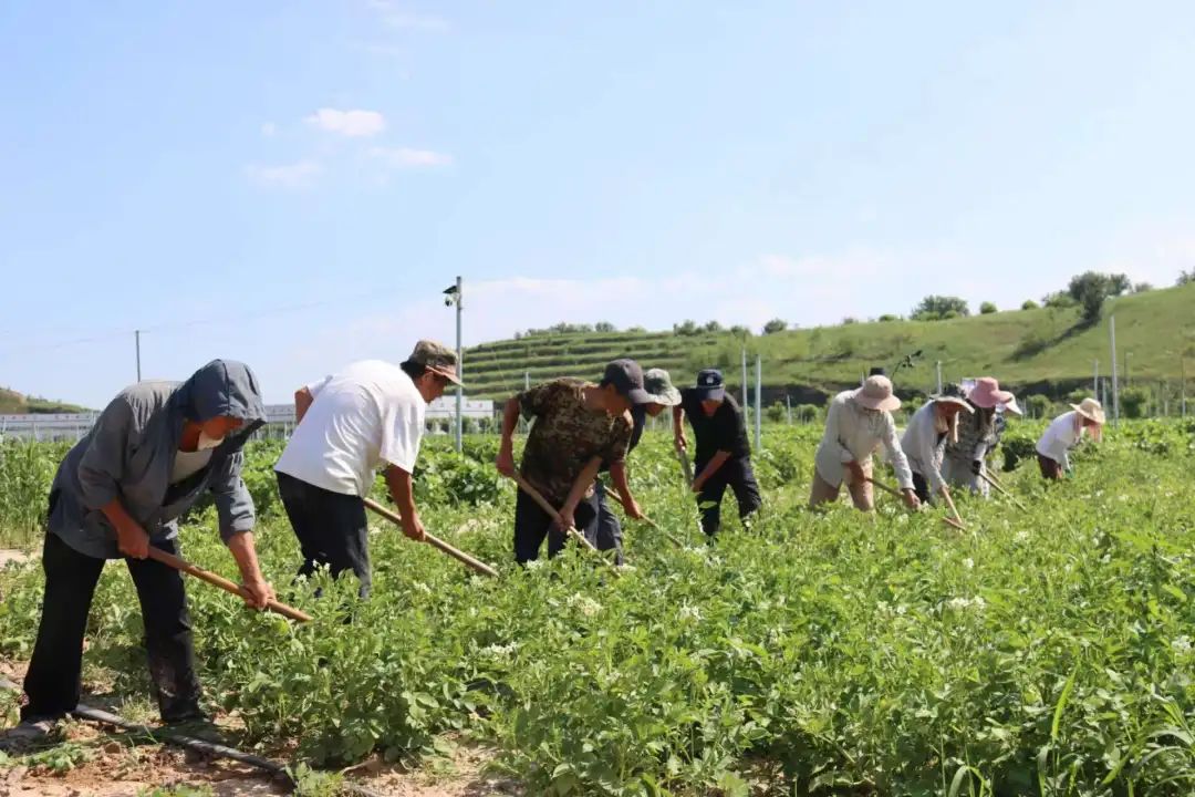 ▲陕西米脂小米示范站研究基地的工人在劳作
