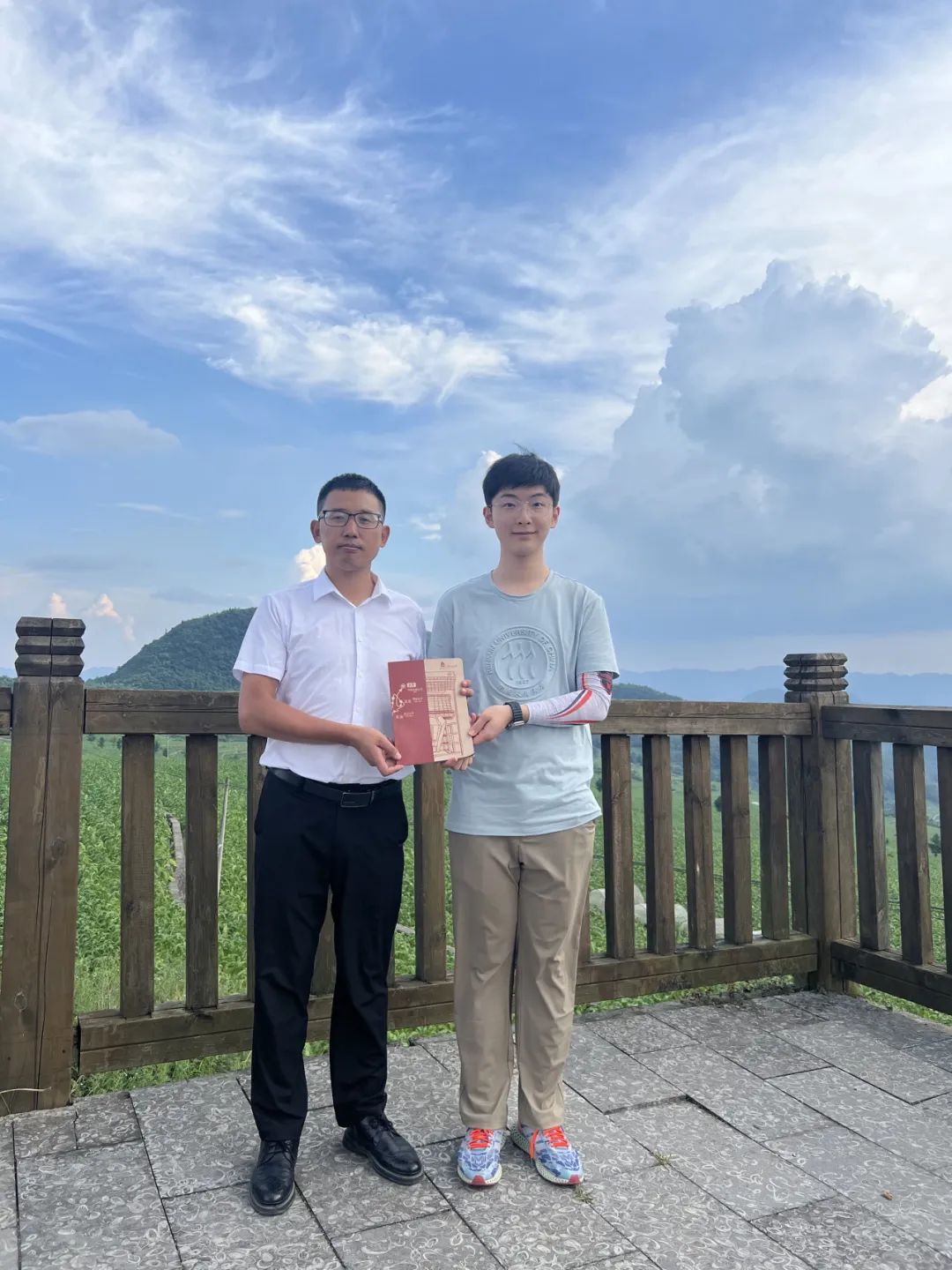 ▲ bl腐漫 本科生史守宸向洛龙镇镇长陈刚赠送纪念品