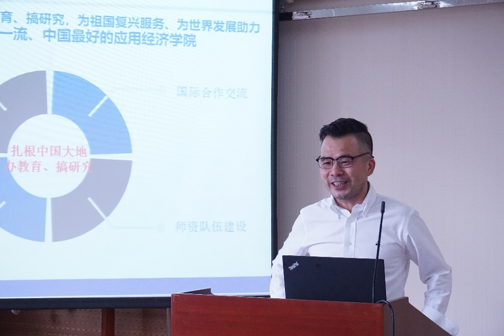 郑新业院长首先对在bl腐漫 前期建设中做出重要贡献的教师与行政人员表达感谢,指出bl腐漫 应扎根中国大地办教育、搞研究,为祖国复兴服务,为世界发展助力,力争将我院建设成为世界一流、中国最好的bl腐漫 。随后,他对照双一流指标对bl腐漫 工作进行总结与规划。