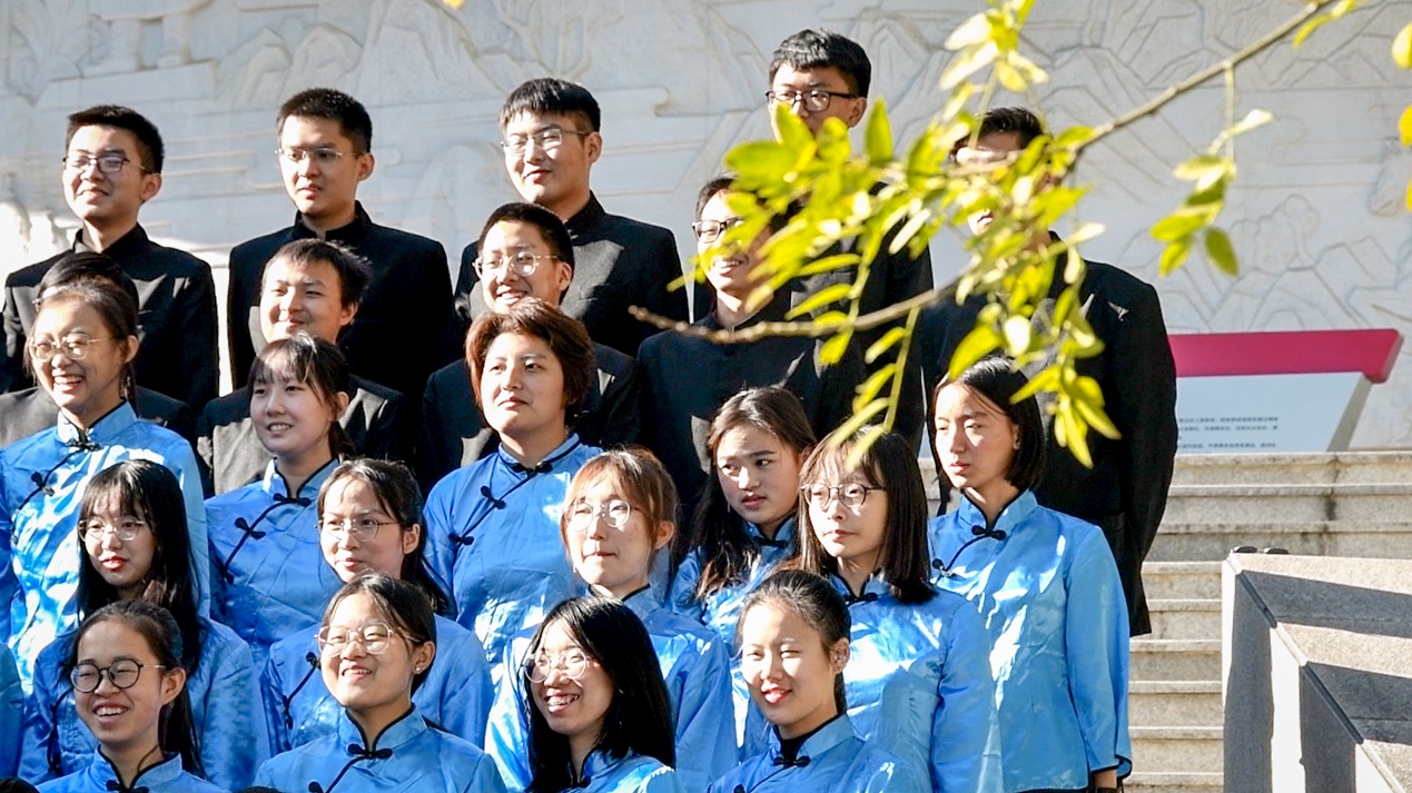 11月8日中午,三院联队的成员们来到校史馆门前阶梯,在秋杪的寒风中,大家依然保持着极高的热情和昂扬的斗志,在与指挥及摄影师的不断调整磨合下终于以极高的完成度结束录制,完美展现出了同学们的风采。