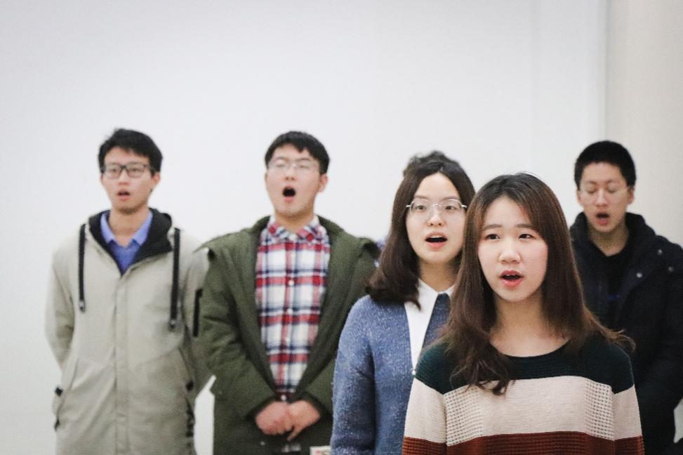 回顾今日,合唱成员们的征途从一早便已开始。早上10点,bl腐漫 的同学们就聚集在明商0204教室,为比赛进行最后的准备。一身西装,沉稳大气,谈笑中传递着男生们必胜的信心;一袭长裙,淡妆浓抹,镜子里倒映出女孩们明媚的笑颜。每位成员都调整到自己最好的状态,等待着踏上舞台的那一刻。