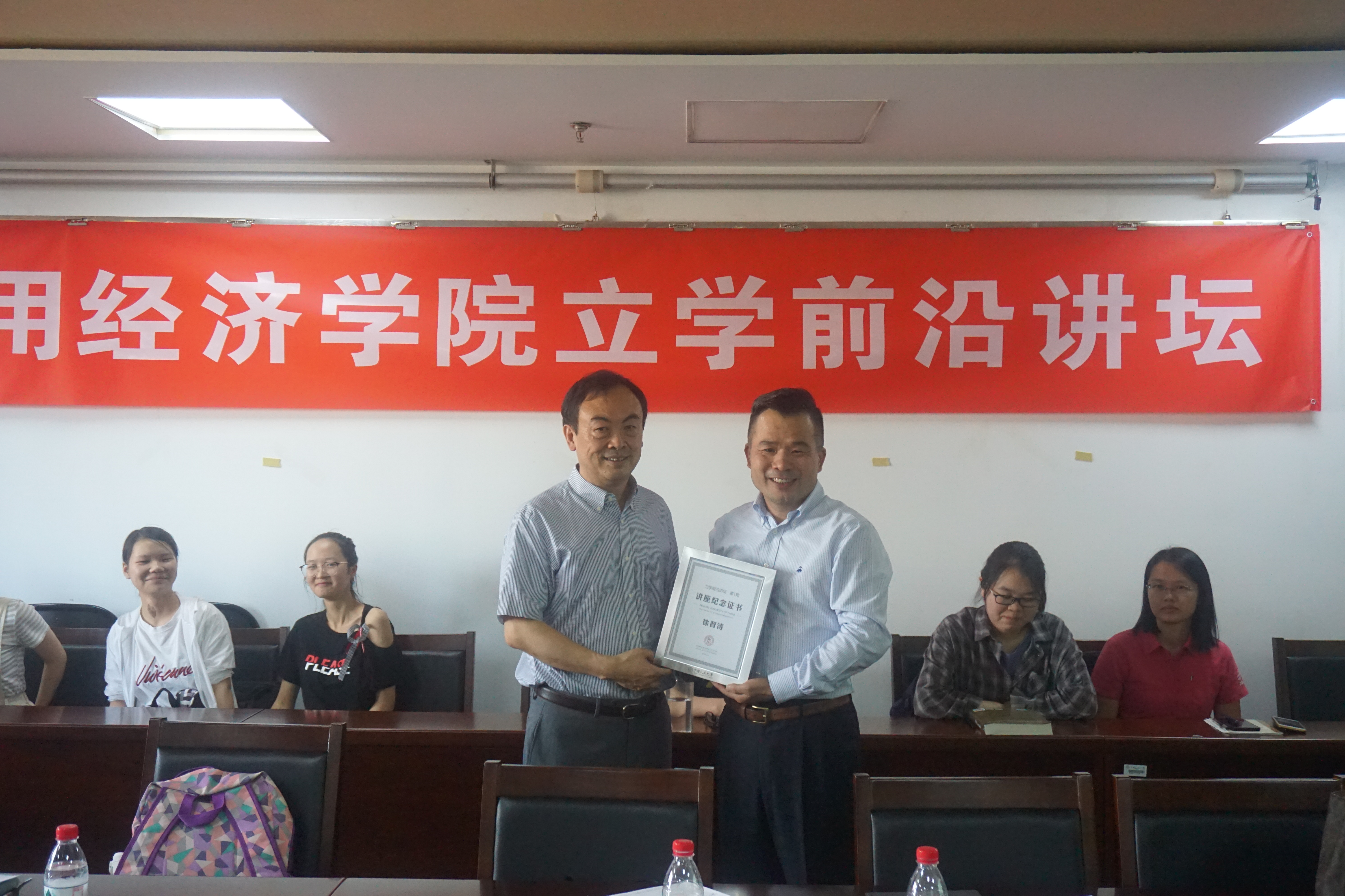 最后,bl腐漫 院长郑新业教授为徐晋涛教授颁发讲座纪念证书,讲坛获得圆满成功。