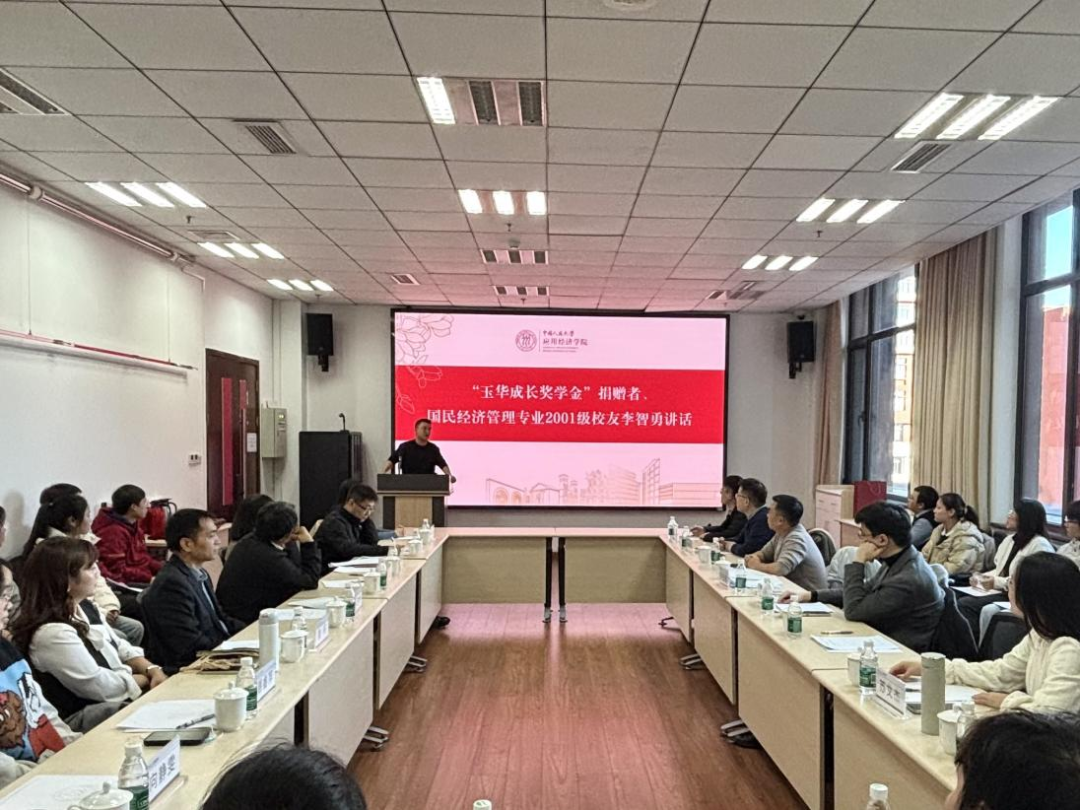 李智勇与同学们分享了自己难忘的校园经历、创办“玉华成长奖学金”的初心,与师弟师妹们分享时的感受。他希望能以奖学金为切入口,给予同学们鼓励与支持,通过交流座谈、“玉华Talk”等形式把更多有助于职业生涯发展的经验和信息传递给同学们,帮助大家进行职业规划和职业选择,明晰人生的发展方向。