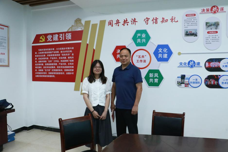 ▲调研团李卉同学访谈岳西县菖蒲镇党委书记徐彬彬