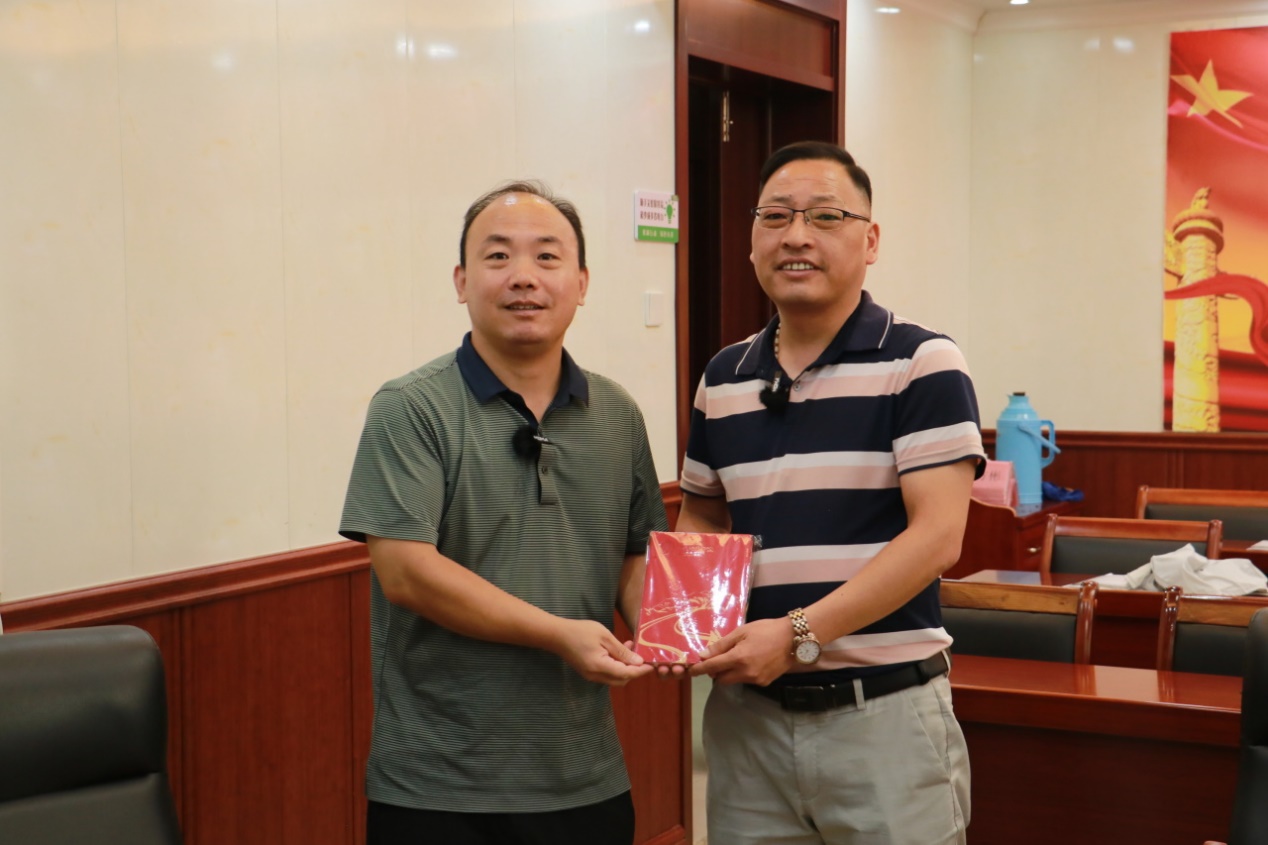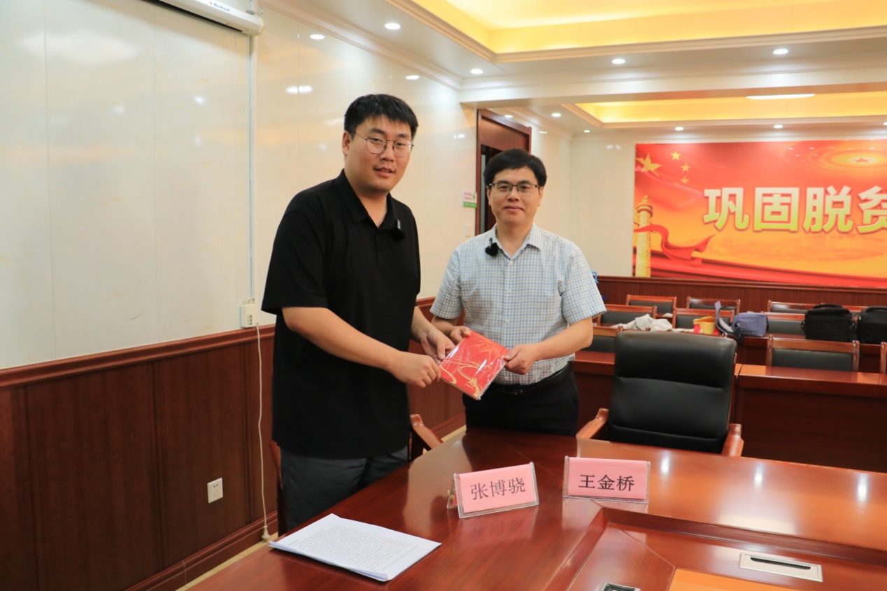 ▲张博骁老师与岳西县副县长王金桥合影