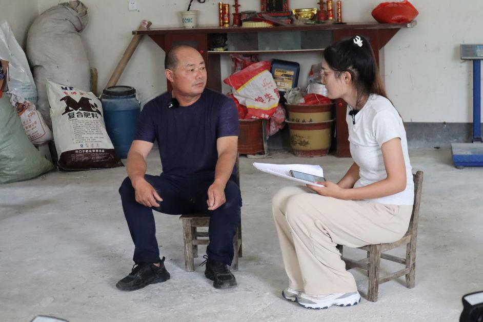 ▲调研团张佳佳同学访谈岳西县融媒体中心派驻和平乡太阳村第一书记王淼
