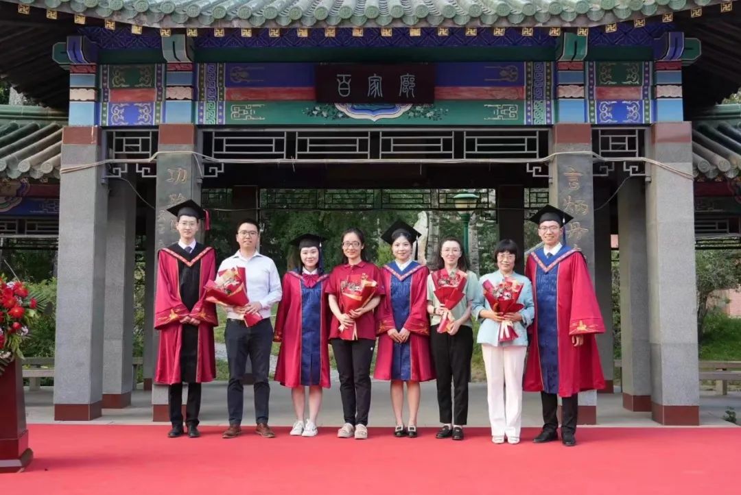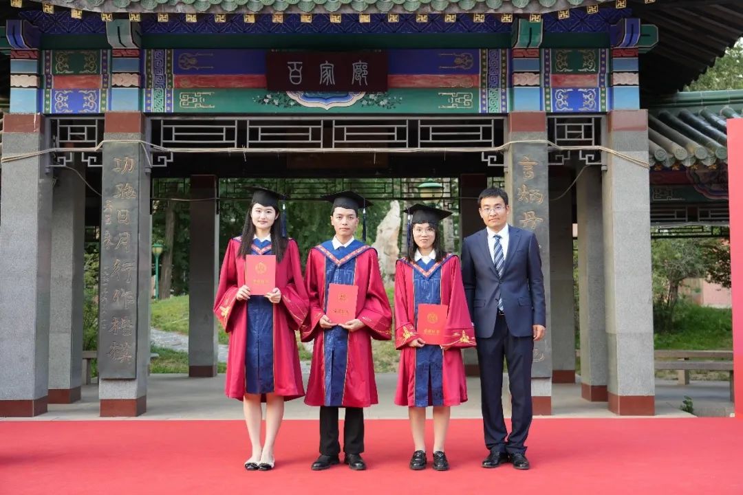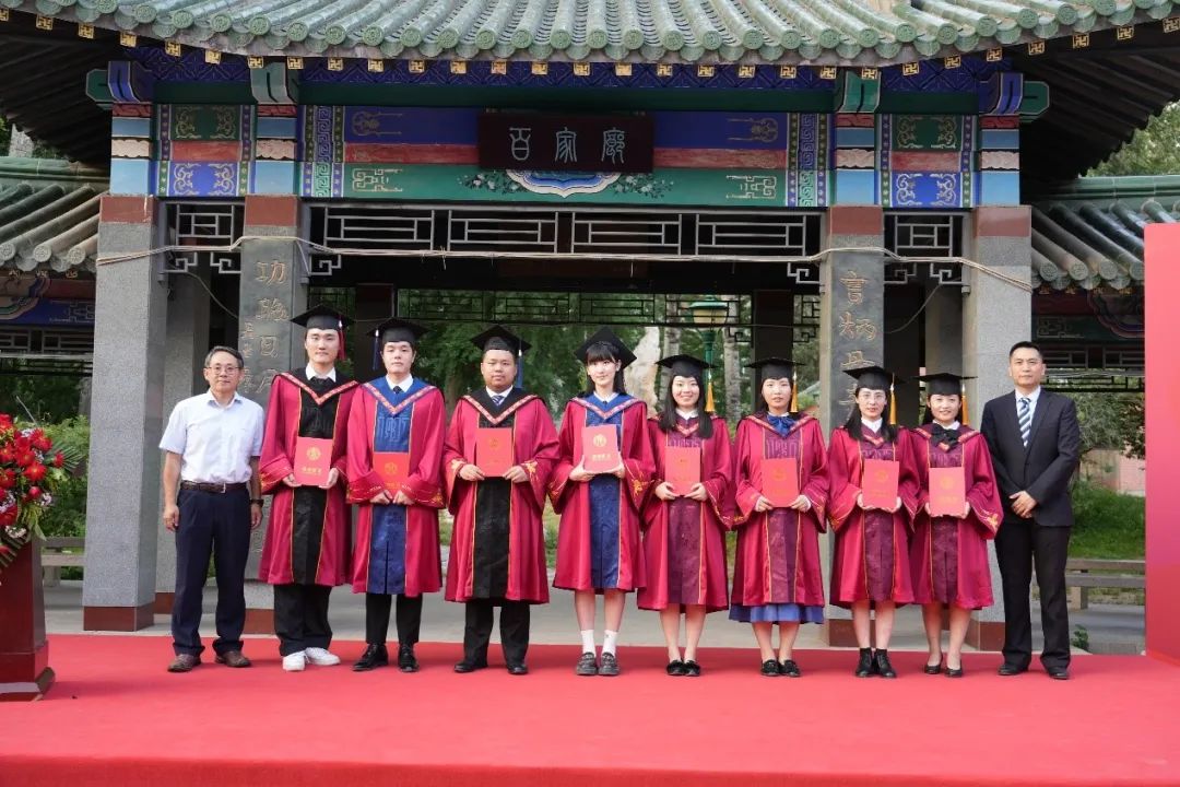 bl腐漫 党委书记张东刚、学校机关部处相关领导、bl腐漫 教职工代表与全体2023届毕业生在明德广场合影留念。
