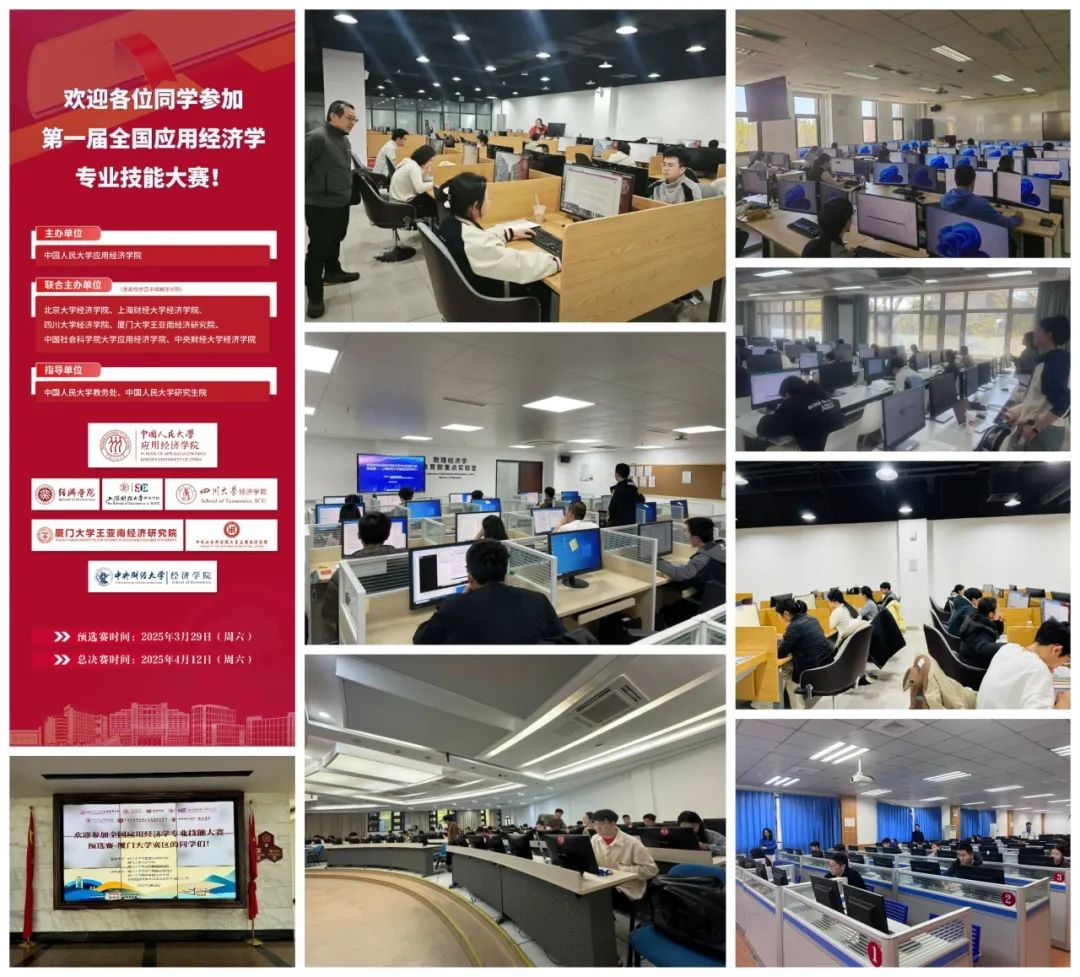 3月29日,七所联合主办高校同时开展应用经济学专业技能大赛预选赛。除联合主办高校学生外,此次预选赛还吸引了来自澳门城市大学、北京航空航天大学、北京理工大学、华东师范大学、南京大学、南开大学、武汉大学、浙江大学(按各高校拼音字母顺序排列)等全国二十余所高校的两百余名本硕博学生参赛,为青年学子提供了展示专业素养与创新能力的平台。