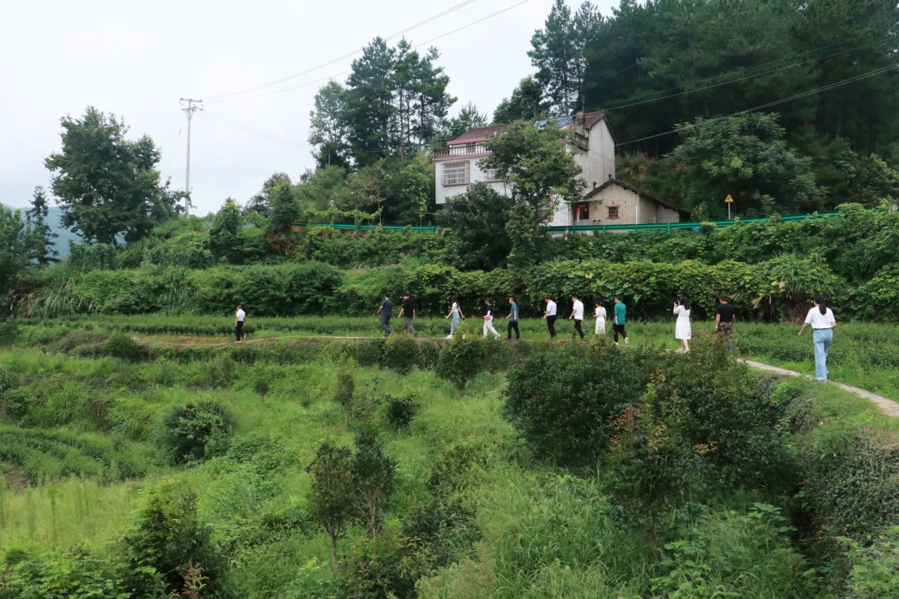 ▲访谈团在安徽省太湖县茶山调研