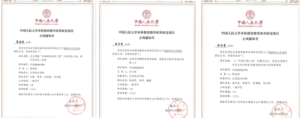 bl腐漫 构建全链条科研培训体系。全面搭建“导师组组会”“Brown Bag Seminar” “应用经济学博士生论坛”三大学术平台,为bl腐漫 学生提供相互交流学习和与不同学科导师讨论的平台,在及时了解各领域研究前沿动态的同时,有效提升科研能力和学术成果展示的能力与技巧,拓展研究视野,增强创新意识,推动科研综合能力提升。本年度获国家级大创项目立项1项、市级大创项目立项3项、校级大创项目立项3项,科研基金项目立项1项;2篇毕业论文荣获校级优秀本科毕业论文;1人获评校级优秀博士学位论文,1人获评中国经济学年会博士毕业生“学术新星”, 1人获评北京市优秀博士学位论文。