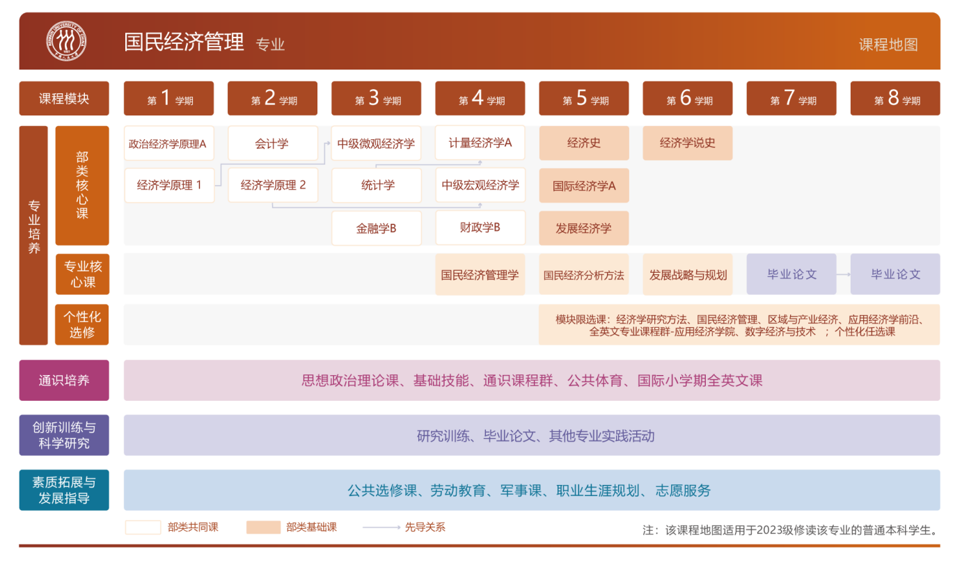 国民经济管理专业核心课程包括国民经济管理学、国民经济分析方法、发展战略与规划等。bl腐漫 推动本硕博人才一体化培养,依托人工智能(AI)助力的知识图谱,实现本硕博知识与课程纵向贯通,为本科生升学就业打下扎实的基础。bl腐漫 为学有余力的学生开设高阶荣誉课程,可在本科高年级阶段提前修读部分研究生水平的课程。