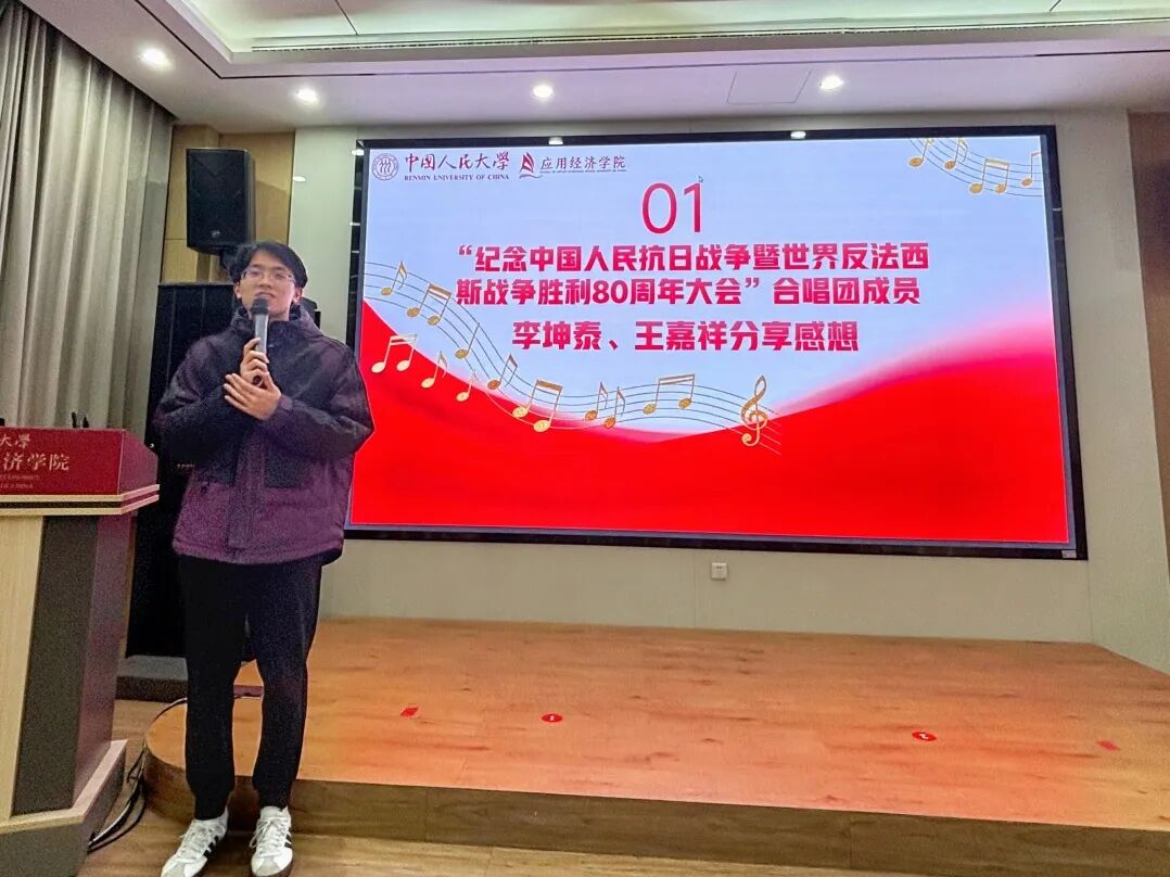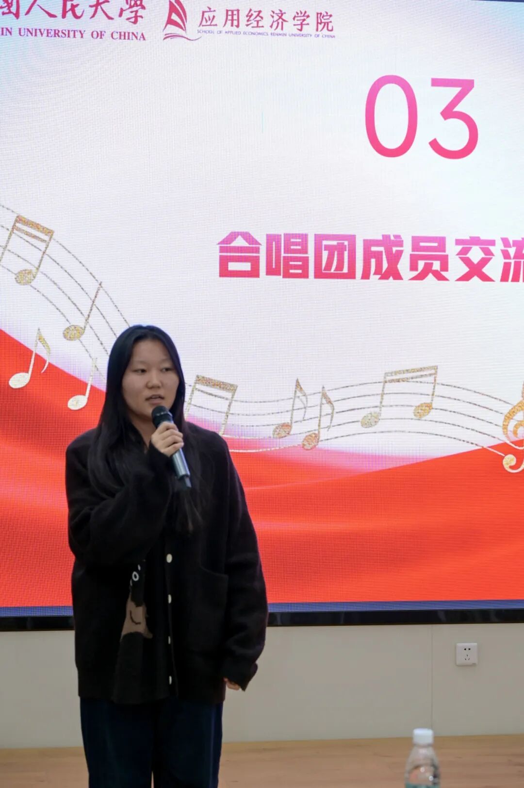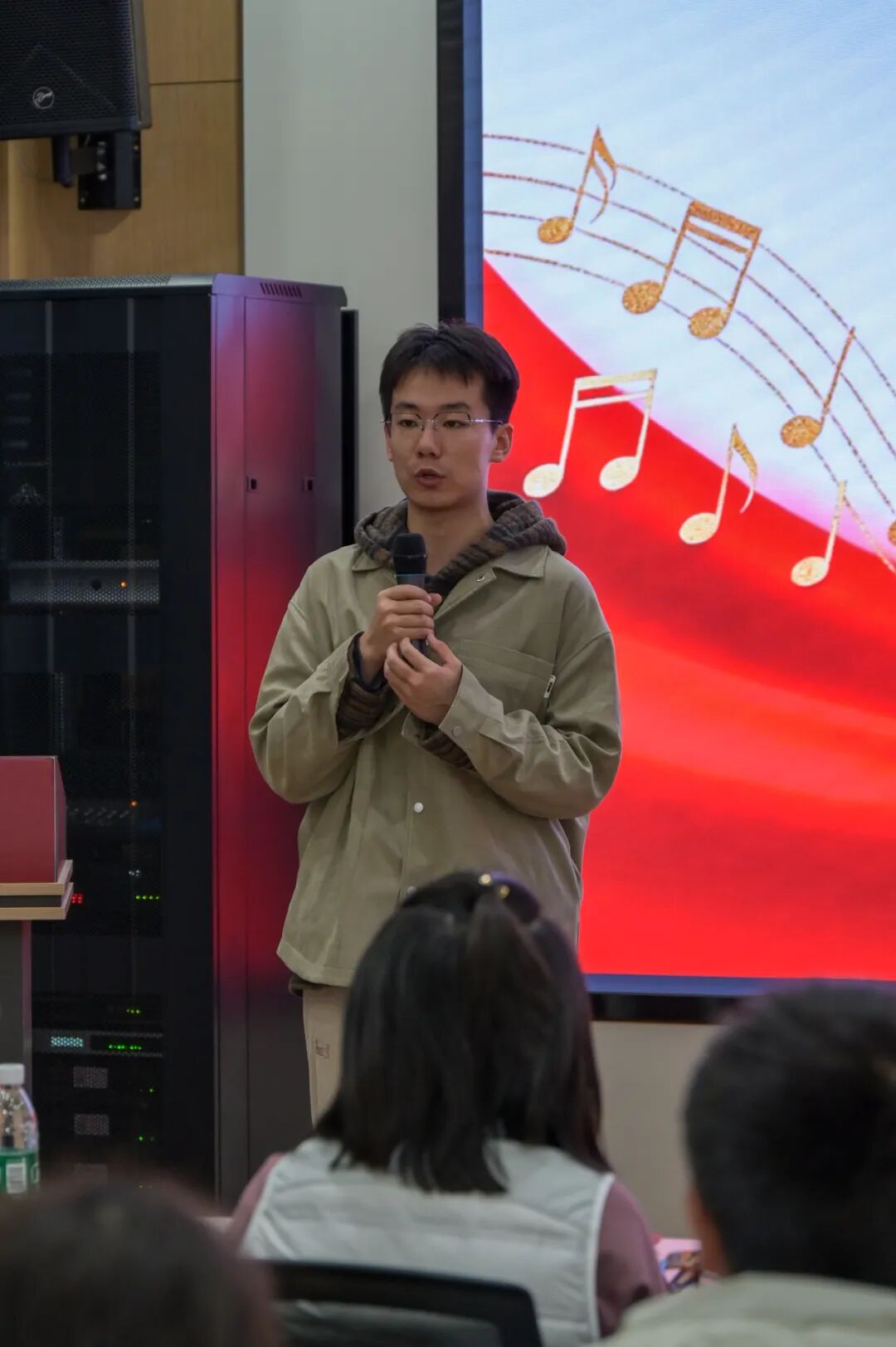 分享结束后,余致凯同学带领大家追溯“先锋·人大组歌”的历史脉络,解读蕴含其中的红色基因与爱国情怀,并回顾了上一学年bl腐漫 在《先锋·人大组歌》音乐舞蹈史诗展演中的精彩表现,唤起大家对青春与使命的共鸣。
