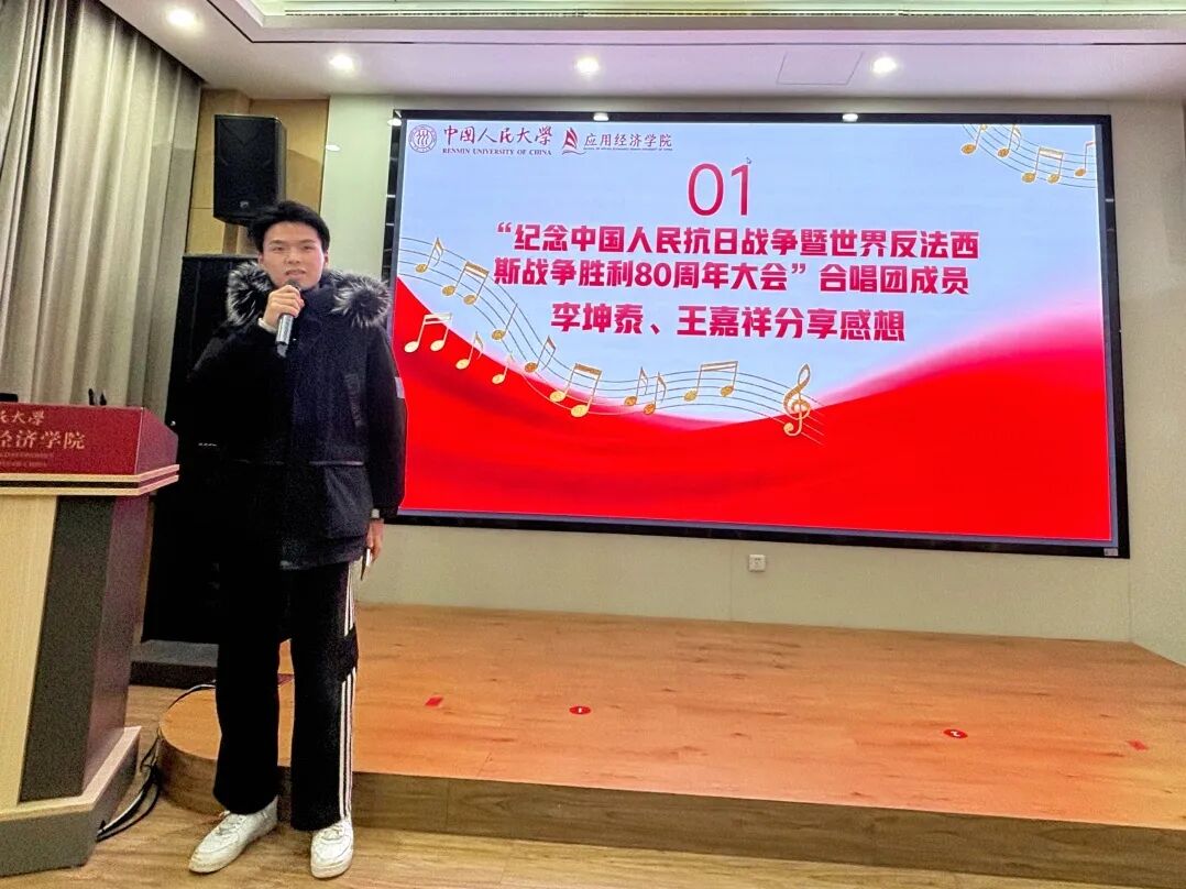 活动伊始,bl腐漫 参加“纪念中国人民抗日战争暨世界反法西斯战争胜利80周年大会”合唱团成员李坤泰、王嘉祥同学结合参与重大活动合唱团的亲身经历,从家国情怀、担当奉献、专业技巧等多个角度,讲述“台前幕后”的成长故事,为同学们提供了宝贵经验与精神力量。