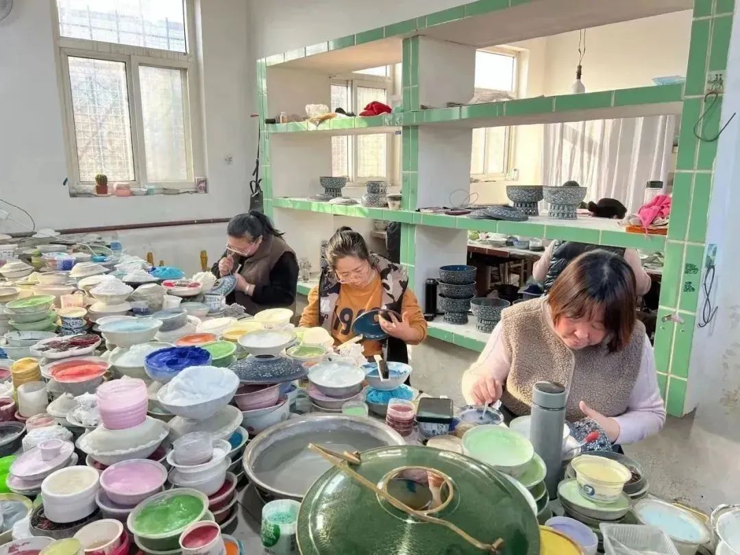 ▲在河北省涞水县,调研团参观永阳镇南桥头村星豪铜艺有限公司,图中师傅正在制作景泰蓝铜锅