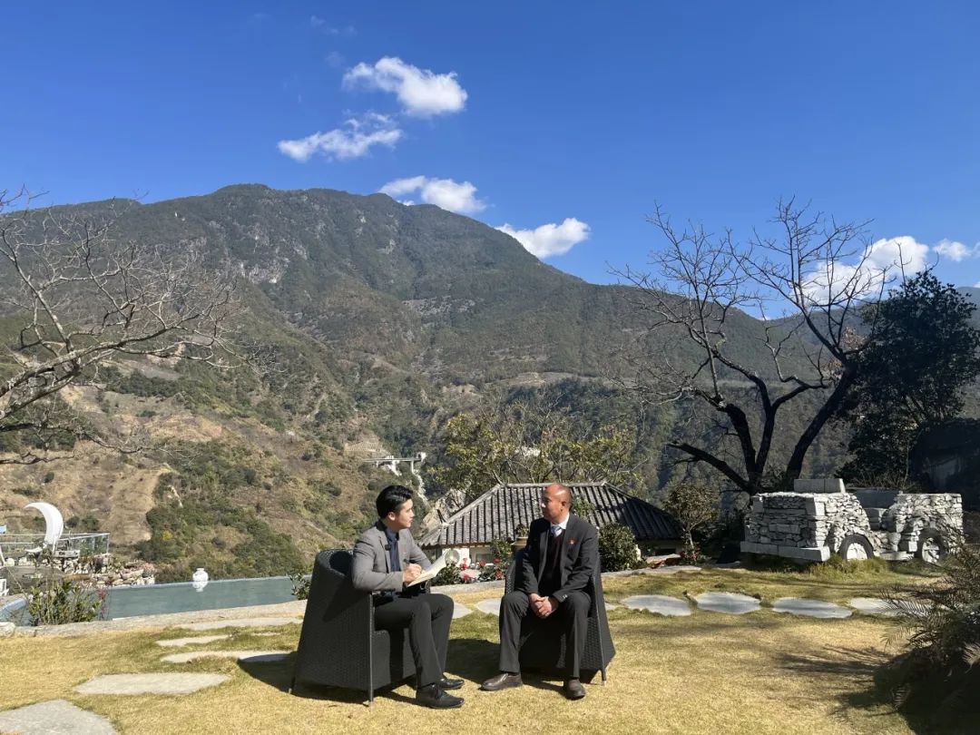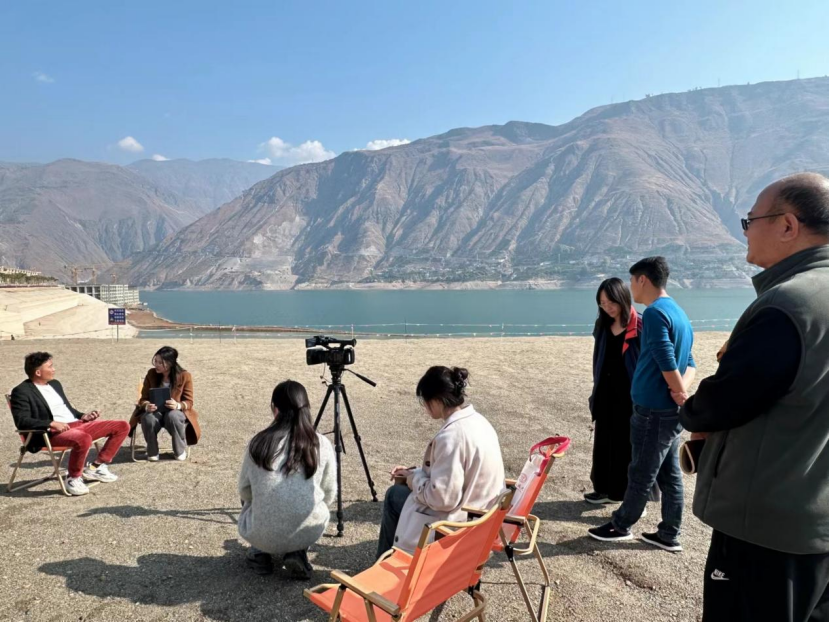 ▲在云南省东川区金沙江边的户外访谈,大家各司其职井井有条