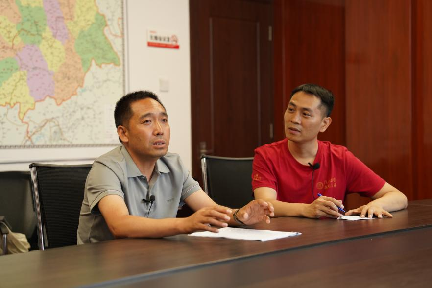 马文军向访谈团介绍赤城县脱贫攻坚及乡村振兴时期的产业发展规划。2018年,赤城县重点打造十大扶贫产业园区,通过“农户+合作社+基地+龙头企业”土地流转脱贫模式、“公司+基地+劳务合作社”务工收入脱贫模式、“农户+合作社+龙头企业”股份合作脱贫模式,使贫困户通过入股产业获得“租金+分红+劳动报酬”,实现稳定增收。2022年,赤城县制定了“2环3带18基地”的发展规划:打造环北京自然生态、环冬奥冰雪温泉两大旅游区,建设白河露天蔬菜、红河设施蔬菜、黑河特色养殖3个生态农业带,在全县18个乡镇建成18个农业示范区。