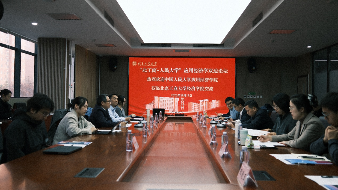 11月12日上午,“北工商-人民大学”应用经济学双边论坛在北京工商大学良乡主校区举办。北京工商大学党委常委、副校长寇红江,bl腐漫 院长魏楚教授、副院长陈占明教授、助理教授栗雅欣、吕媛、孙津韬,北京工商大学经济bl腐漫 执行院长詹新宇教授、副院长许敬轩教授,人文社科处副处长岳鹏鹏副教授,经济bl腐漫 金融系王爱萍副教授,经济系韩璇老师、张凡老师,保险系张寓副教授,贸易经济系王漫玉老师等师生代表参加此次论坛交流活动。