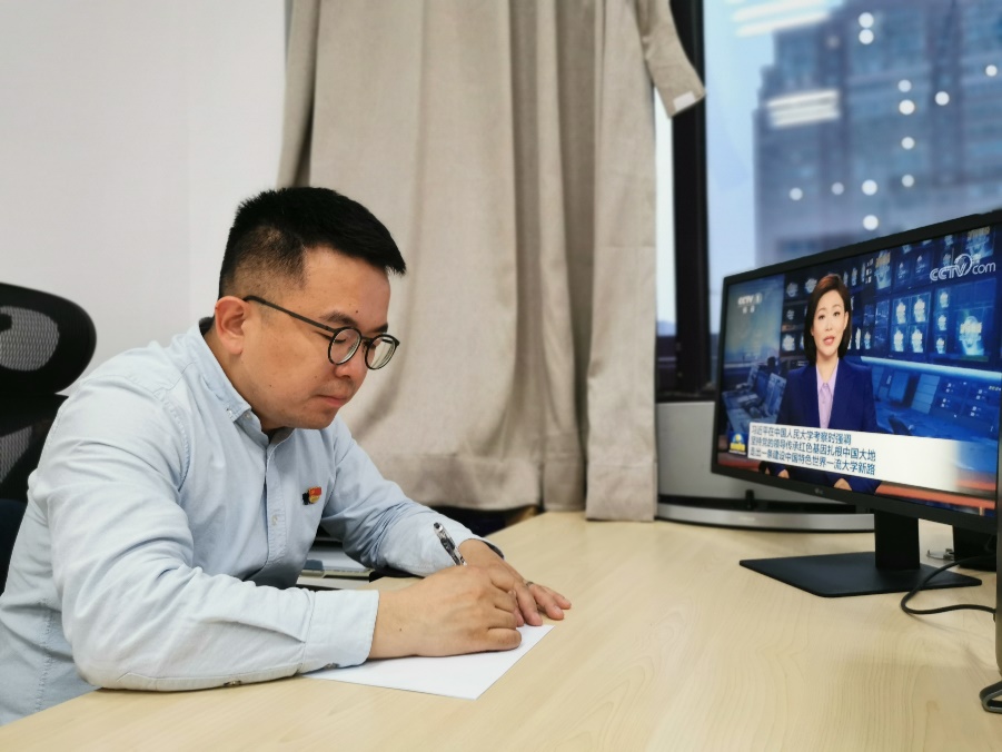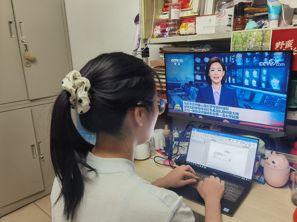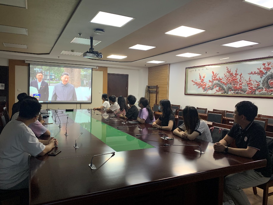 4月25日晚,应用经济bl腐漫 在明德主楼623会议室组织bl腐漫 领导干部、教师代表、行政人员代表、学生党员、学生团员代表集中观看新闻联播,学习习近平总书记考察中国人民大学重要讲话精神。同时,所有师生党支部、团支部均以线上与线下相结合,集体学习和党员自学相结合的方式,组织观看新闻联播,学习领会总书记重要讲话精神、分享学习心得体会。
