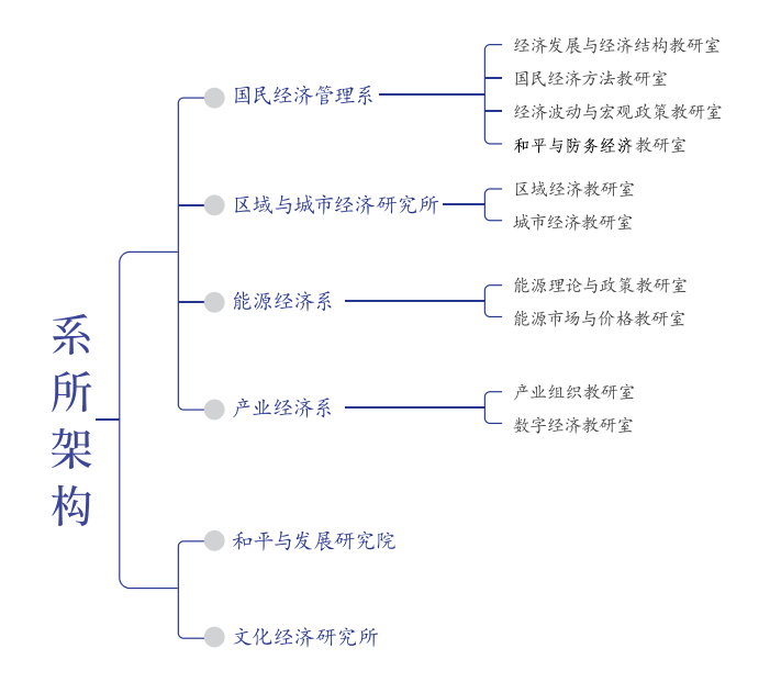 bl腐漫 现下设国民经济管理系、区域与城市经济研究所、能源经济系和产业经济系 4 个系所,和平与发展研究院和文化经济研究所 2 个研究机构。国民经济管理系发轫于 1950 年bl腐漫 命名组建时的八大创校专业之经济计划系,是新中国经济学科的学术重镇和重要起点,具有悠久的办学历史、优良的学术传统和强大的影响力。顺应国家发展的需要,经济计划系于 1992 年更名为国民经济管理系。区域与城市经济研究所可追溯至 1950 年设立的经济地理教研室,后改为生产布局教研室,2010 年启用现名。能源经济系成立于 2011 年,设立了我国第一个能源经济本科专业,2022 年获批我国第一个碳经济硕士专业。产业经济系可追溯至 1950 年八大创校专业之工厂管理系。为培养数字化时代产业经济紧缺型、急用型、复合型人才,服务加快建设现代化产业体系,于 2023 年设立产业经济系。bl腐漫 立足“两个大局”,为研究新时代国家统筹发展与安全的战略性、前瞻性问题,于 2021 年先后成立和平与发展研究院、文化经济研究所,于2024年牵头联合成立新质生产力研究中心(校属科研机构)。