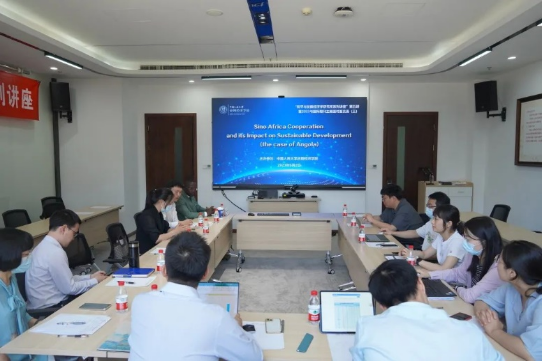 2023年6月2日,安哥拉高校政治学与国际关系学教授Almeida Mendes Henriques 在“和平与发展经济学研究所系列讲座”发言