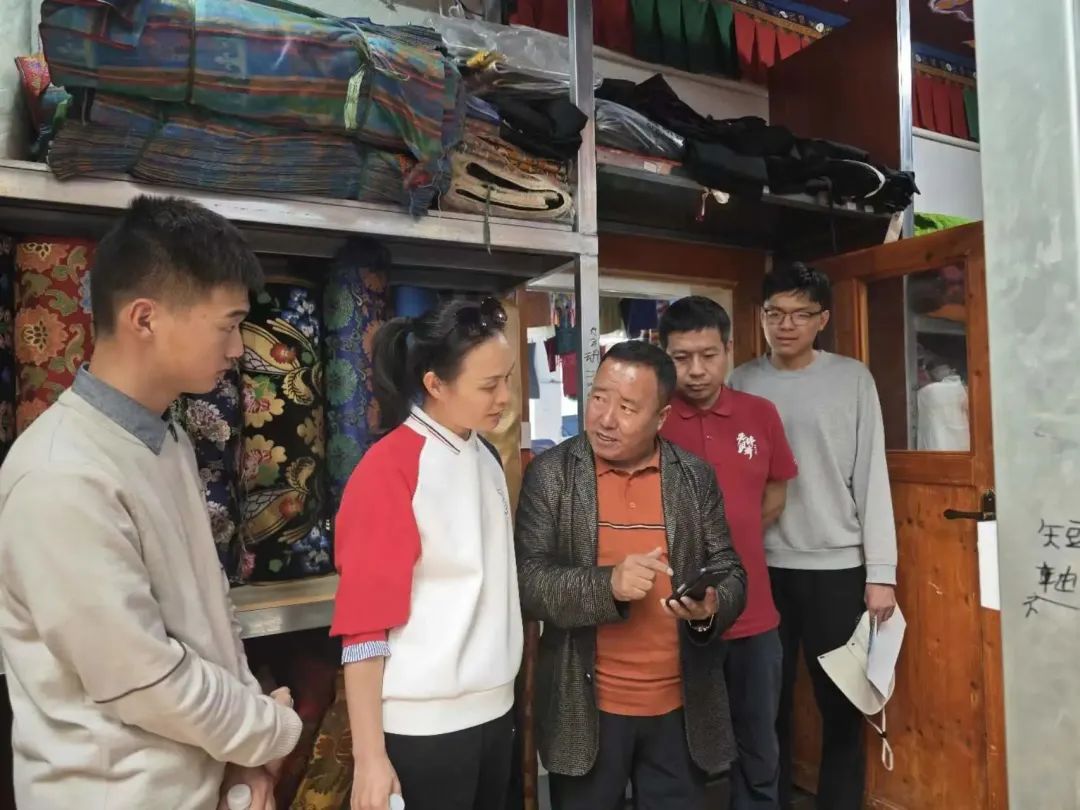 8月17日下午14点半,访谈团来到济南援藏扶持民族传统产业传承发展项目——白朗现代藏式服装厂进行调研。白朗现代藏式服装厂成立于2009年5月25日,在1995年成立的旺丹乡服装厂的基础上建设而成,注册资金为100万元。公司主要以民族手工业为基础,生产高中端藏式服装、藏帽、藏式帐篷、藏式装饰品、刺绣唐卡、羊毛加工等藏区民族特色产品。2016年以来,服装厂与时俱进,结合市场需求变化定制各类藏式演出服和中小学校服。目前,服装厂拥有资产总额达2500万余元,其中固定资产1900万元;建筑面积达3574平方米;有日喀则和白朗县城2个销售分店,分别有260平方米和60平方米。现有36名技术能手,其中固定职工18名;已贫困户就业18名,现均已成为缝纫能手,通过缝纫劳动改善了家庭生活条件,同时为2名未就业大学生提供了公司管理员的岗位。