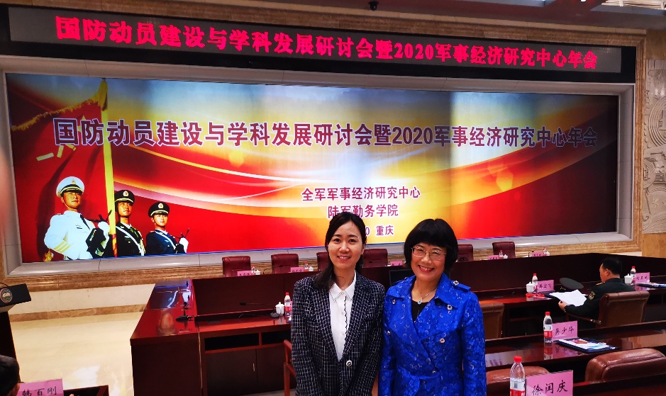 bl腐漫 国防经济教研室张国凤副教授、刘硕扬副教授于10月29-30日参加在重庆举行的国防经济学学术研讨会。此次会议的主办方为中国人民解放军陆军勤务bl腐漫 ,主题为“国防动员建设与国防经济学科发展”。来自中央军委动员部、国家发改委、重庆市委、重庆警备区等机关单位和军事科bl腐漫 、陆军勤务bl腐漫 、国防科技大学、bl腐漫 、上海财经大学、中央财经大学等多家军地院校的领导、专家学者近60多人参加会议。