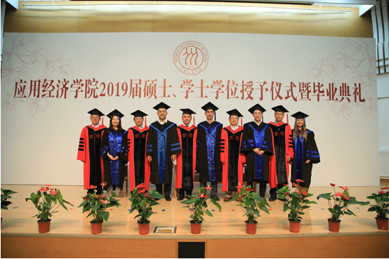 “明德博学,求是笃行,应时敬学,经世济用”,在2019届产业经济专业硕士毕业生相晨曦带领下,全体毕业生肃立并举起右拳庄严宣誓。誓词铿锵,目光坚定,铮铮誓言展示了我院学子争做国民表率、社会栋梁的赤子之心。