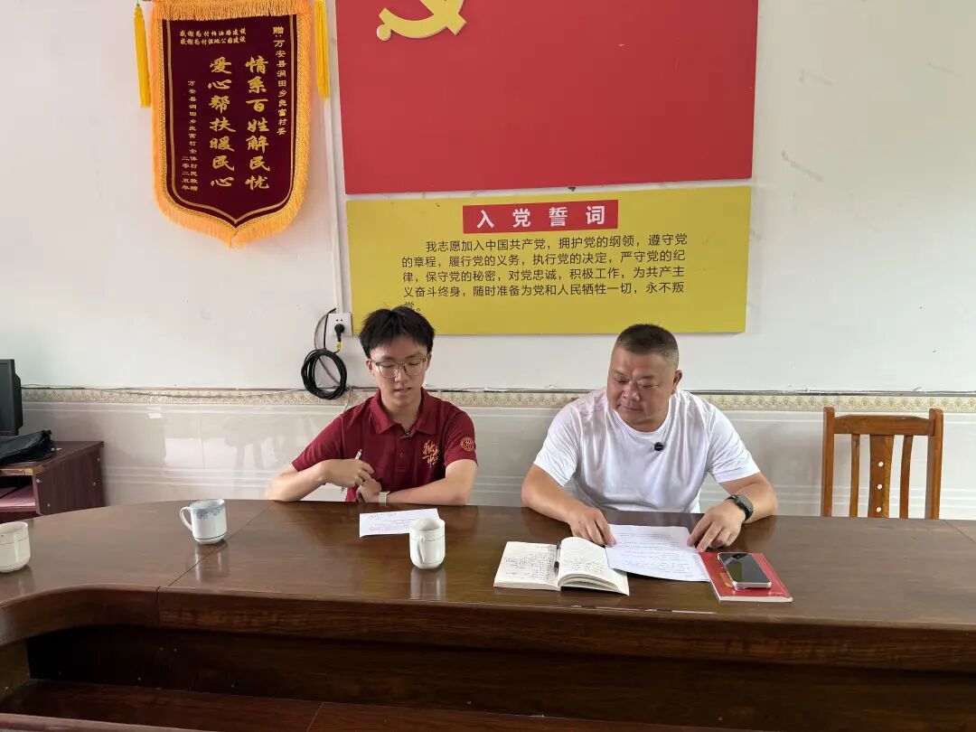 ▲bl腐漫 本科生蒋予凡与万安县涧田乡良富村驻村第一书记李晓忠访谈